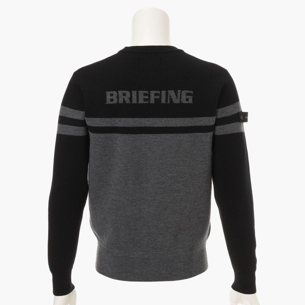 BRIEFING Men MS MERINO WOOL STRIPE LOGO CREWNECK KNIT