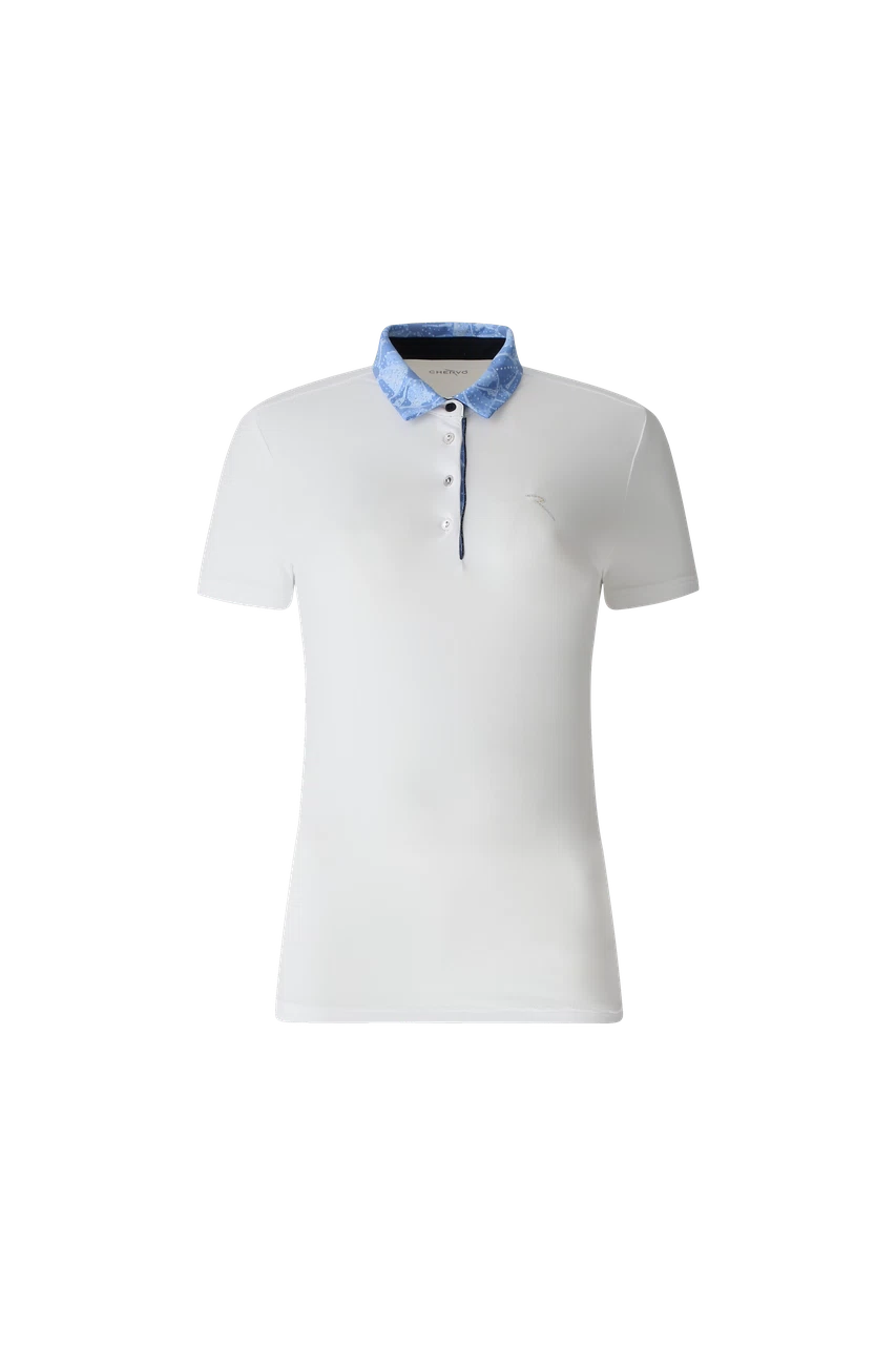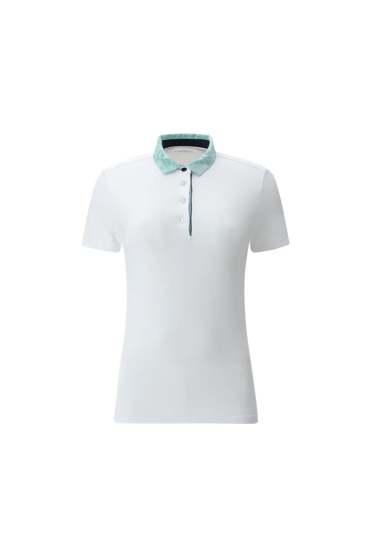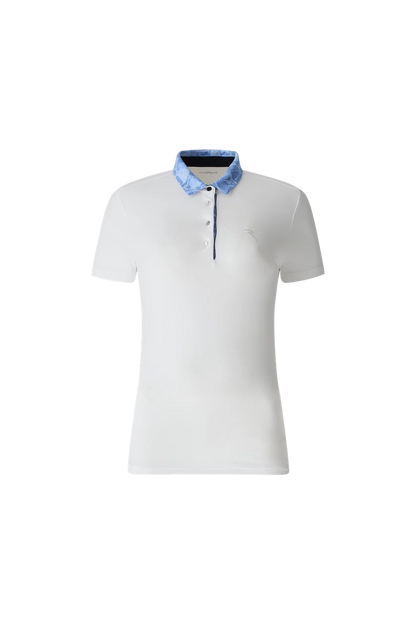 Sunblock®とDry-Matic®のソフトで軽量なストレッチ・ジャージー素材を使用した女性用ポロシャツ。速乾性に優れ、有害な紫外線から身を守るUVカット加工が施されています。シャツの襟には柄入りのインサートとコントラストの効いた内側のバンドがあしらわれています。ボタンとマッチする光沢のあるシルバートーンのトリム。胸にはエレガントで洗練された光沢のあるロゴディテール。