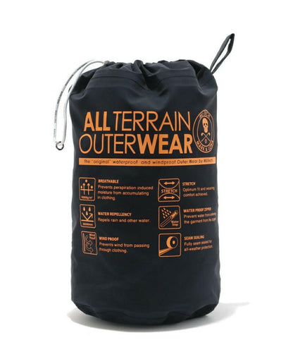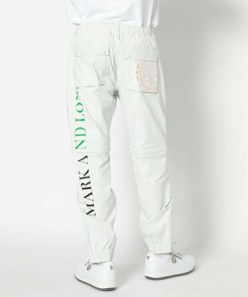 優れ蒸し暑い梅雨の時期に最適な全天候型のML_TECH 3Lレインパンツ。非常に優れた防水性と透湿性(※)のバランスにより、衣服内の快適性をコントロールします。右前と左後ろにブランドロゴ、右パッチポケットにサークルスカルをプリントで表現しました。フロントやポケットのフラップにロゴ刻印入りプランサーボタン、収納袋の口にロゴ入りエラスティックコードを配し、それぞれの接ぎ目にはブランドロゴプリント入りのシームテープを採用しています。 軽量、2WAYストレッチによるノンストレスな穿き心地を実現。オーバーパンツとしての着用を想定したゆとりをもたせつつ、テクニカルなパターンによるスッキリしたシルエットが特徴です。左右の身頃は膝部分がファスナー仕様になっており、脱着が可能。持ち運びに便利な同素材の収納ポーチ付き。