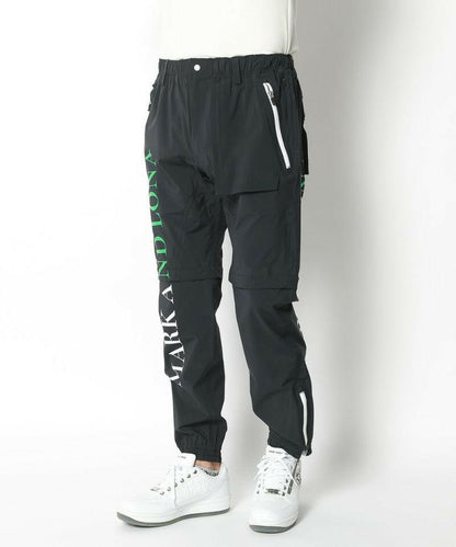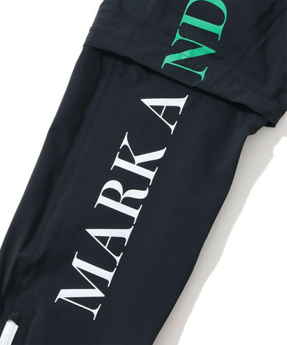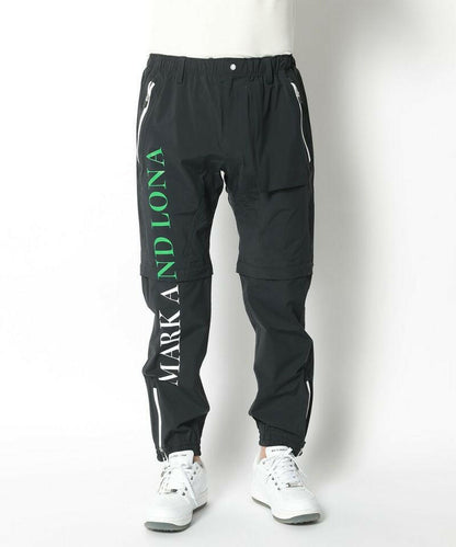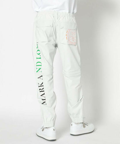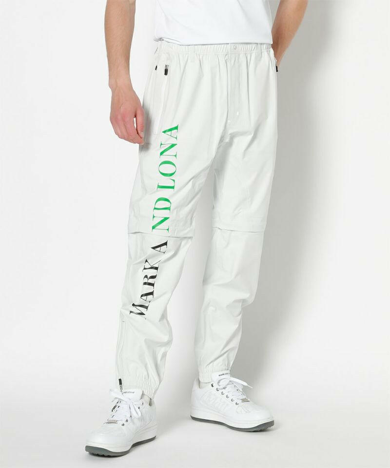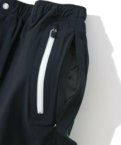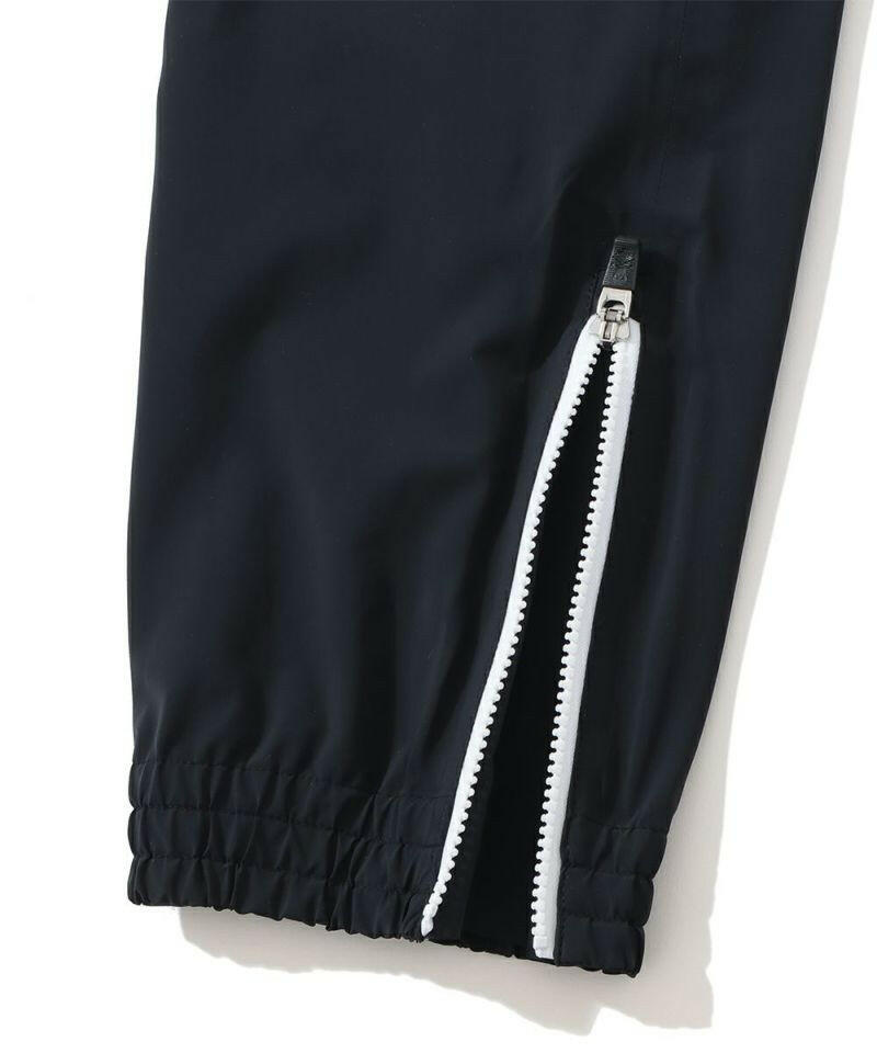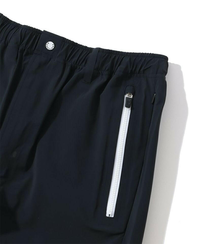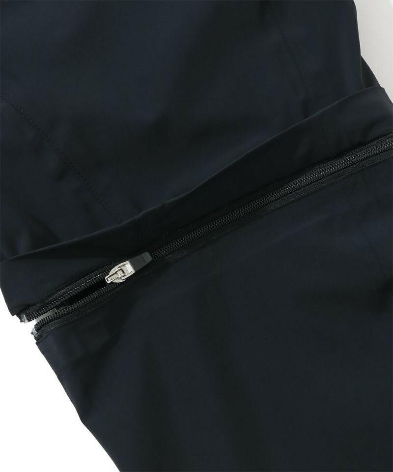 感性と機能性をあわせもつ「小松マテーレ」の透湿防水機能を備えた最先端ファブリックを採用。縦横方向へのストレッチ性、撥水性、耐風性、通気性、柔軟性に優れ、またお手入れも簡単な素材です。アクセスしやすい両サイドの大きなファスナーポケット、止水仕様の防水ファスナーを配し、ベルトループ付きのウエストベルト部分はゴムインベル+ドローコードによるイージー仕様です。裾口は着脱が簡単なベンチレーション付きファスナー開閉仕様になっています。