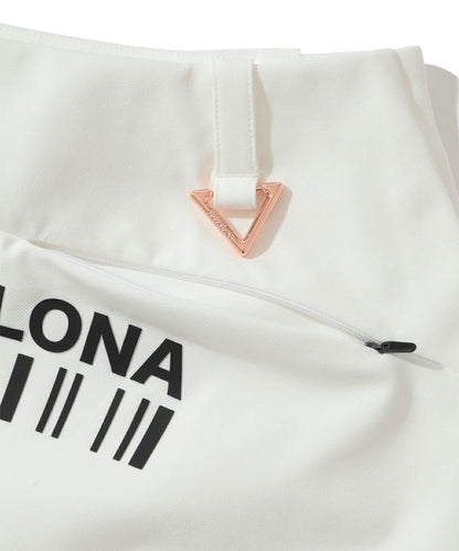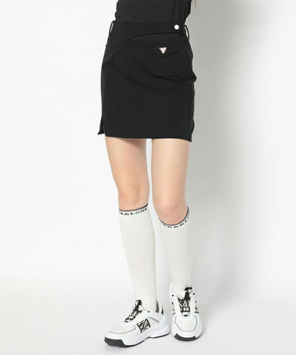 フロントのカーブカッティングデザインが特徴的なタイトスカート。接触冷感、防シワ、紫外線防止機能を兼ね備えた、二重織り2WAYストレッチのナイロンツイル素材を使用。フロントのカットアウトデザインとバックのロゴプリントが印象的。またバックのヨークもヒップラインが綺麗に出るなめらかなカーブに切り替えたこだわりのアイテムです。