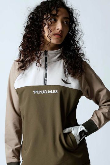 1PIU1UGUALE3 GOLFよりHALF ZIPジャケットが登場。シンプルで洗練されたデザインに、カラーコントラストが視覚的アクセントを加えたスタイリッシュなアイテムです。ハーフジップ仕様で温度調節や着脱も容易。軽量ながら保温性に優れ、早朝や日没後の冷え込みでも体温を保ちます。4WAYストレッチリサイクルポリエステルとバックフリースを採用し、撥水性やUVカット機能を備えた多機能素材で快適。