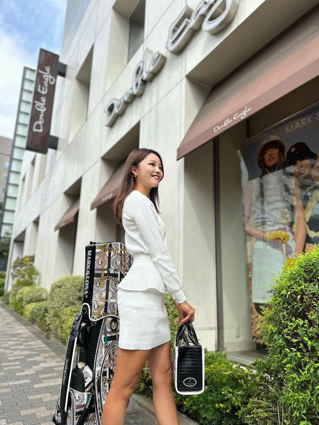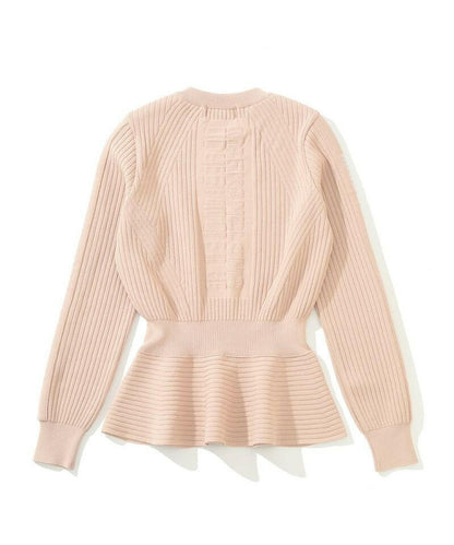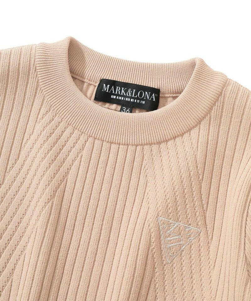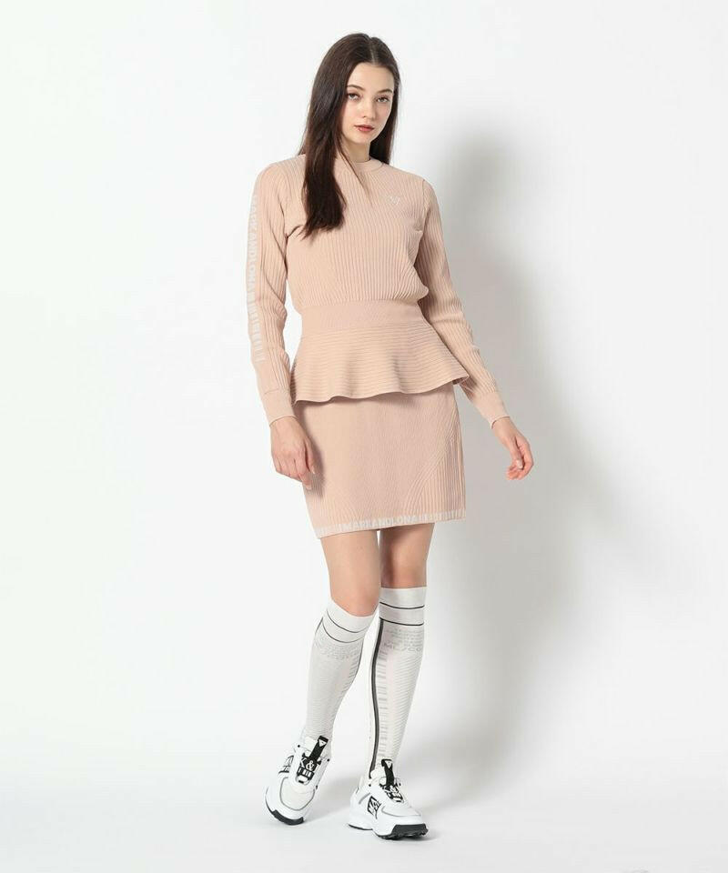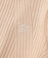 レーヨンダルの長繊維とストレッチナイロンをコード調に撚糸し、さらに2工程かけて撚糸することでより表情のある糸に仕上げました。快適なキックバック性がありながら、マットでドレープ性のある風合いが特徴です。リブ編み地を随所に採用することでさまざまな動きに追従し、ラウンド中もストレスフリーで着用いただけます。ややローウエストの切り替えに、ペプラムデザインが女性らしいエレガントさを演出。少しブラウジングさせて着用いただくのがおすすめです。