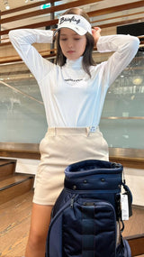 ・わずかにツヤを帯びた素材の質感によって、スポーティーなトップスに上品さをプラス。大人のラウンドコーデに最適な佇まいに。