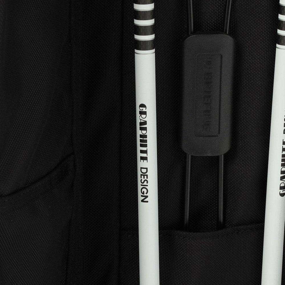 カーボン素材のスタンドはグラファイトデザイン社に別注、シャフトをイメージしたカラーリングに仕上げてました。