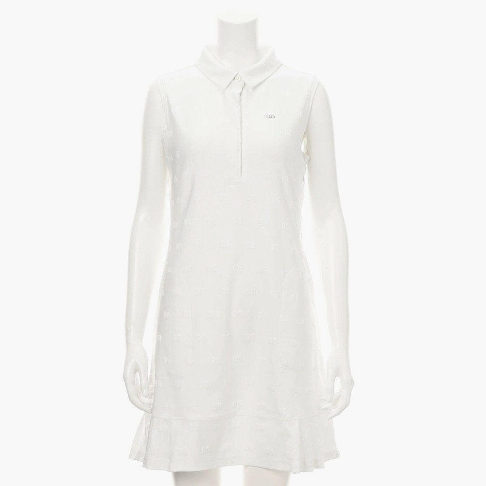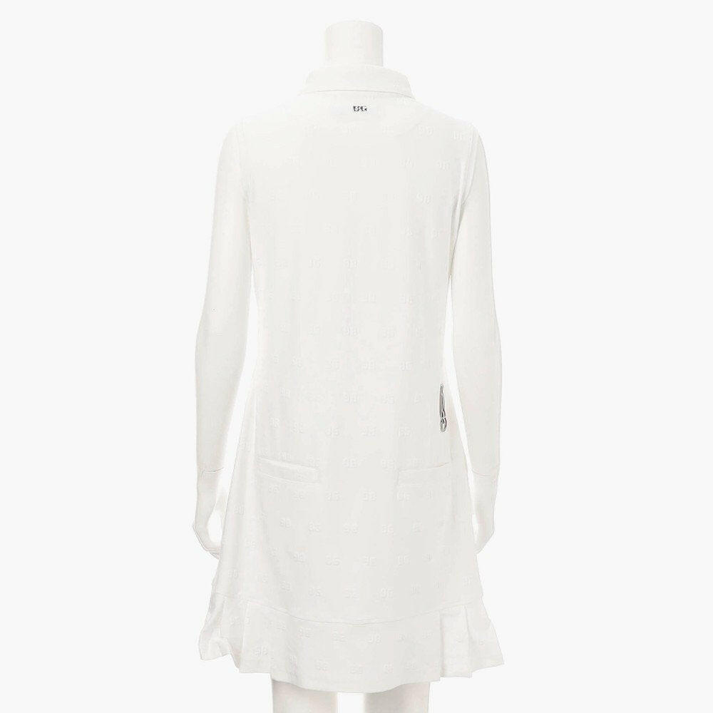 ワントーンのカラーリングに柄はジャガードの凹凸で表現された総柄ワンピは、存在感がありながらも、品の良さを感じさせる絶妙なデザインバランスが秀逸。
