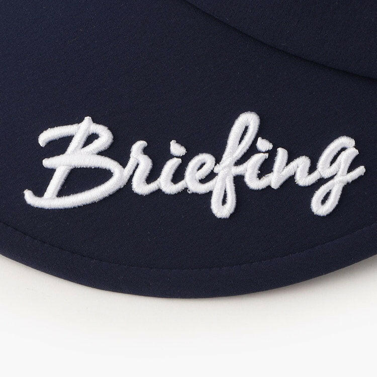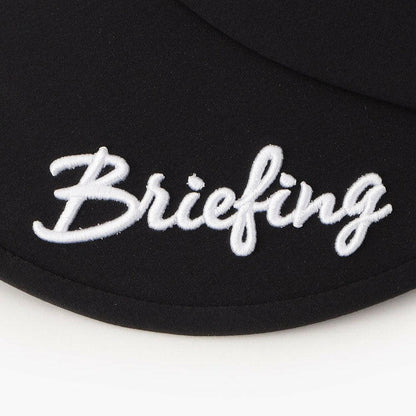 ・幅広のツバには立体的なBRIEFINGロゴ、左サイドにはBマークモチーフ、アジャスター部分にもBRIEFINGロゴの刺繍をあしらった存在感ある仕上がり。