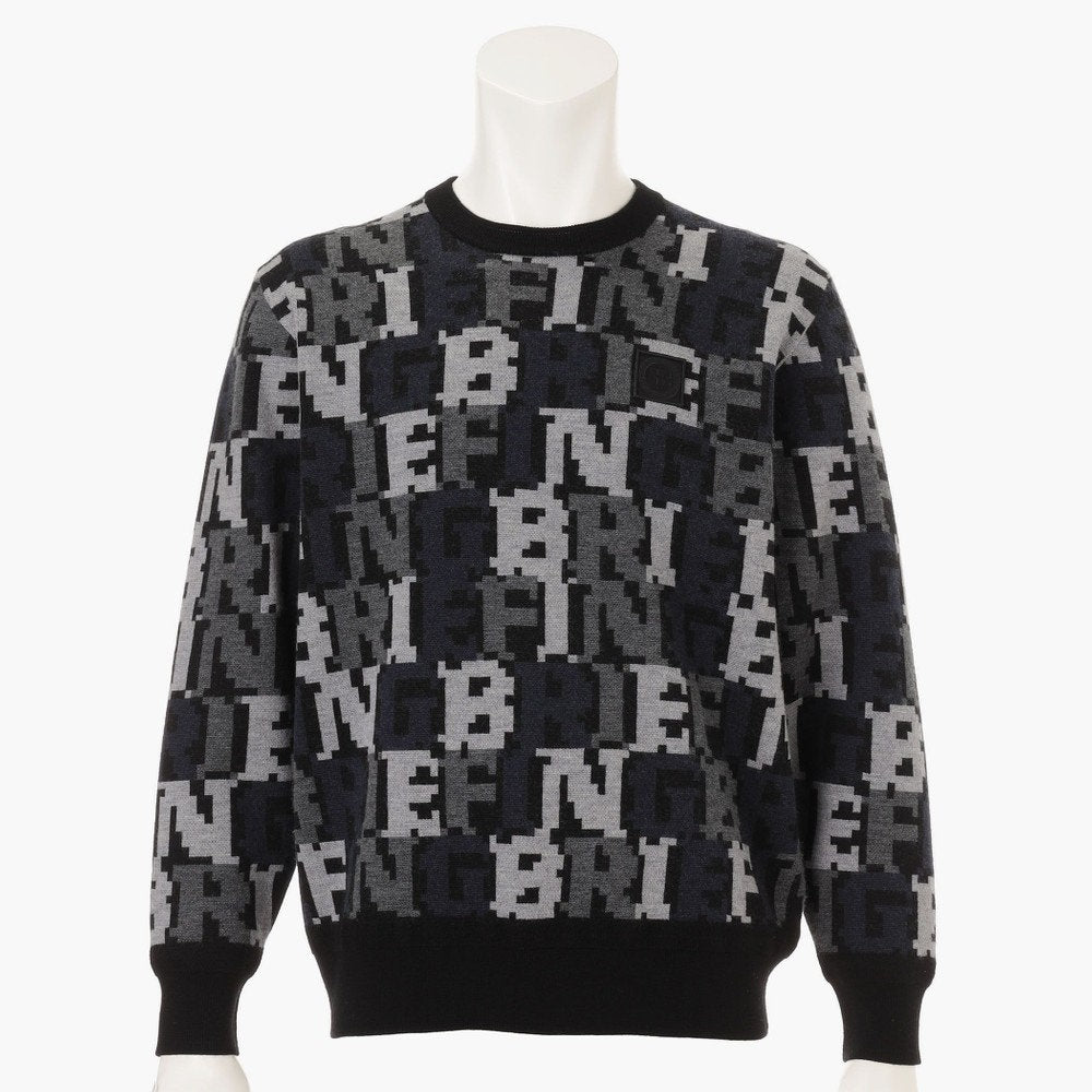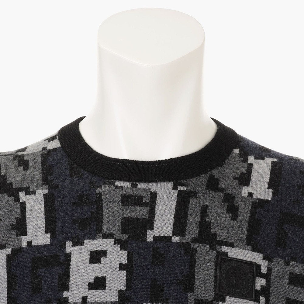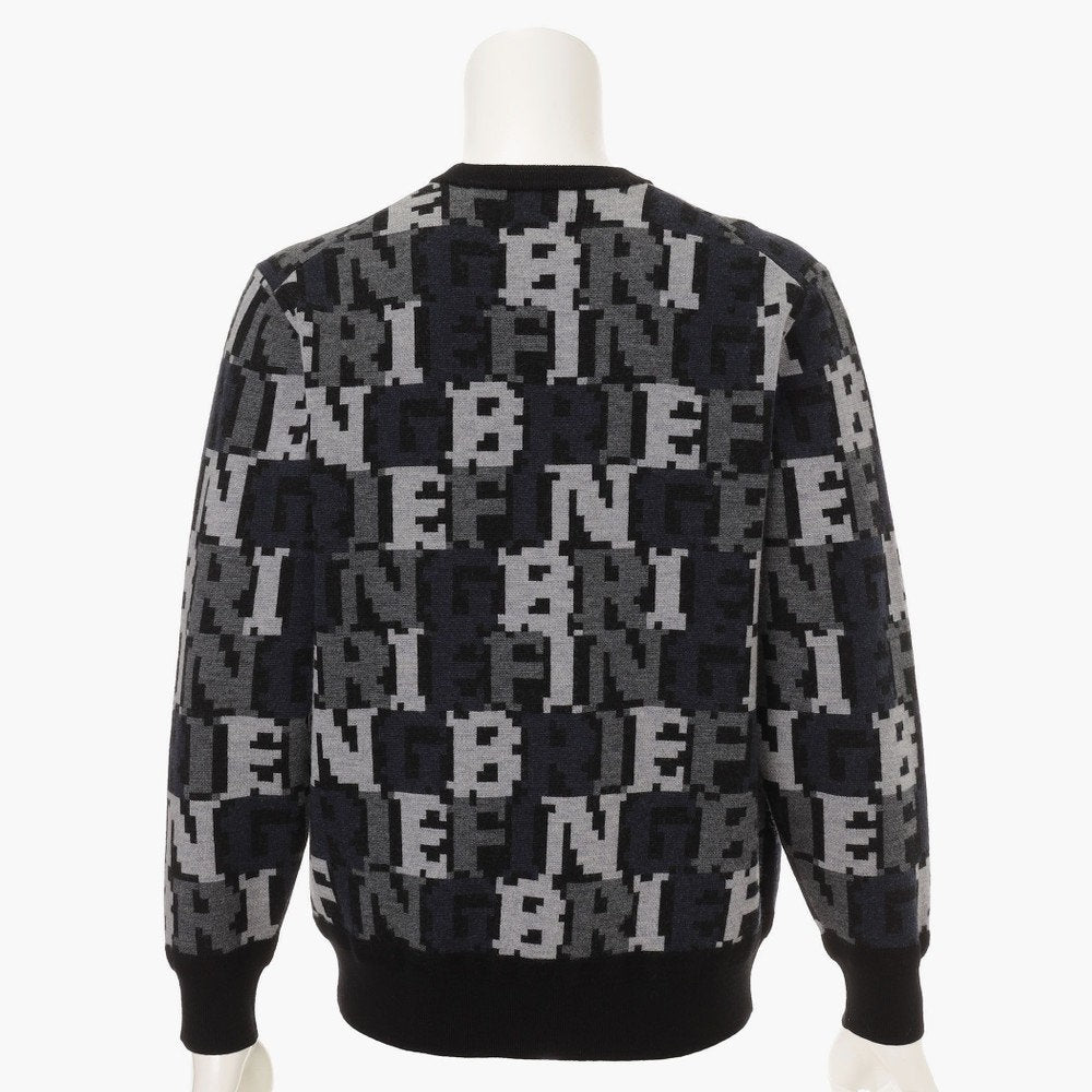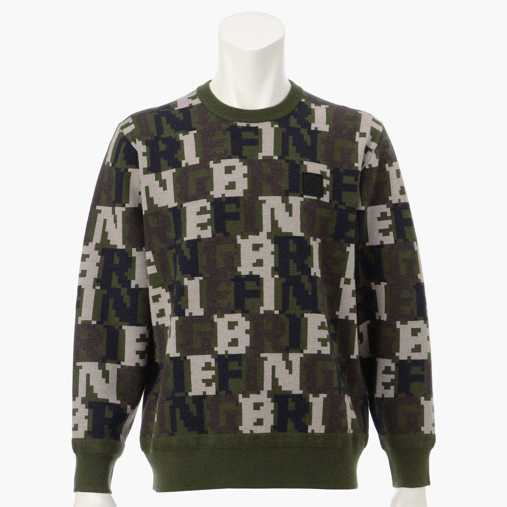 スタイリングにエッジを効かせるダブルジャガードのニットプルオーバーは、BREIFINGロゴをカモフラージュ柄のように配置した総柄デザインが特徴的。