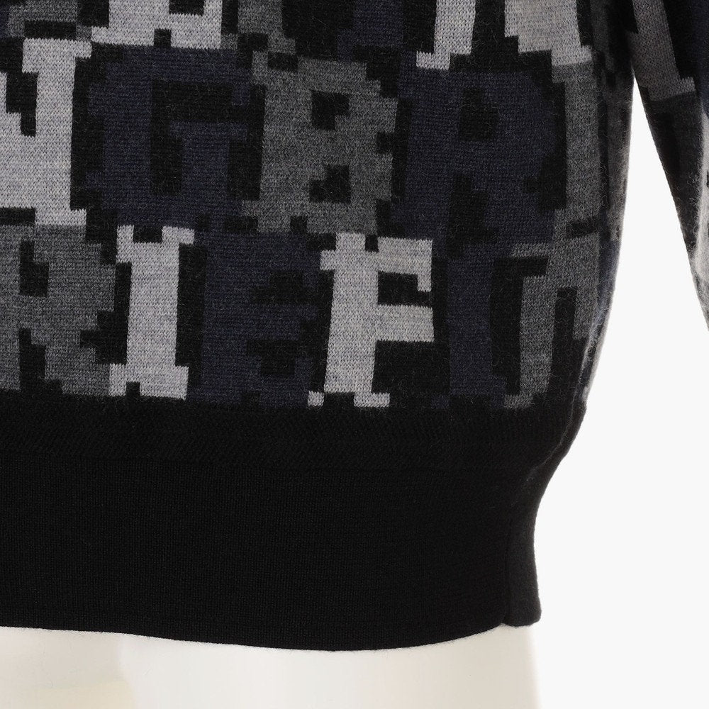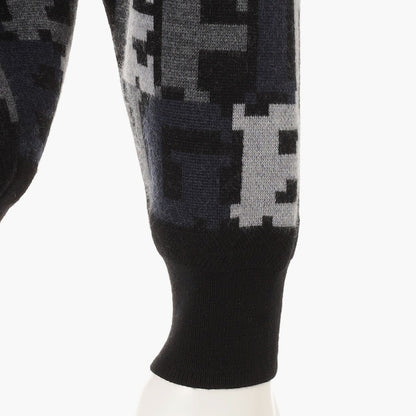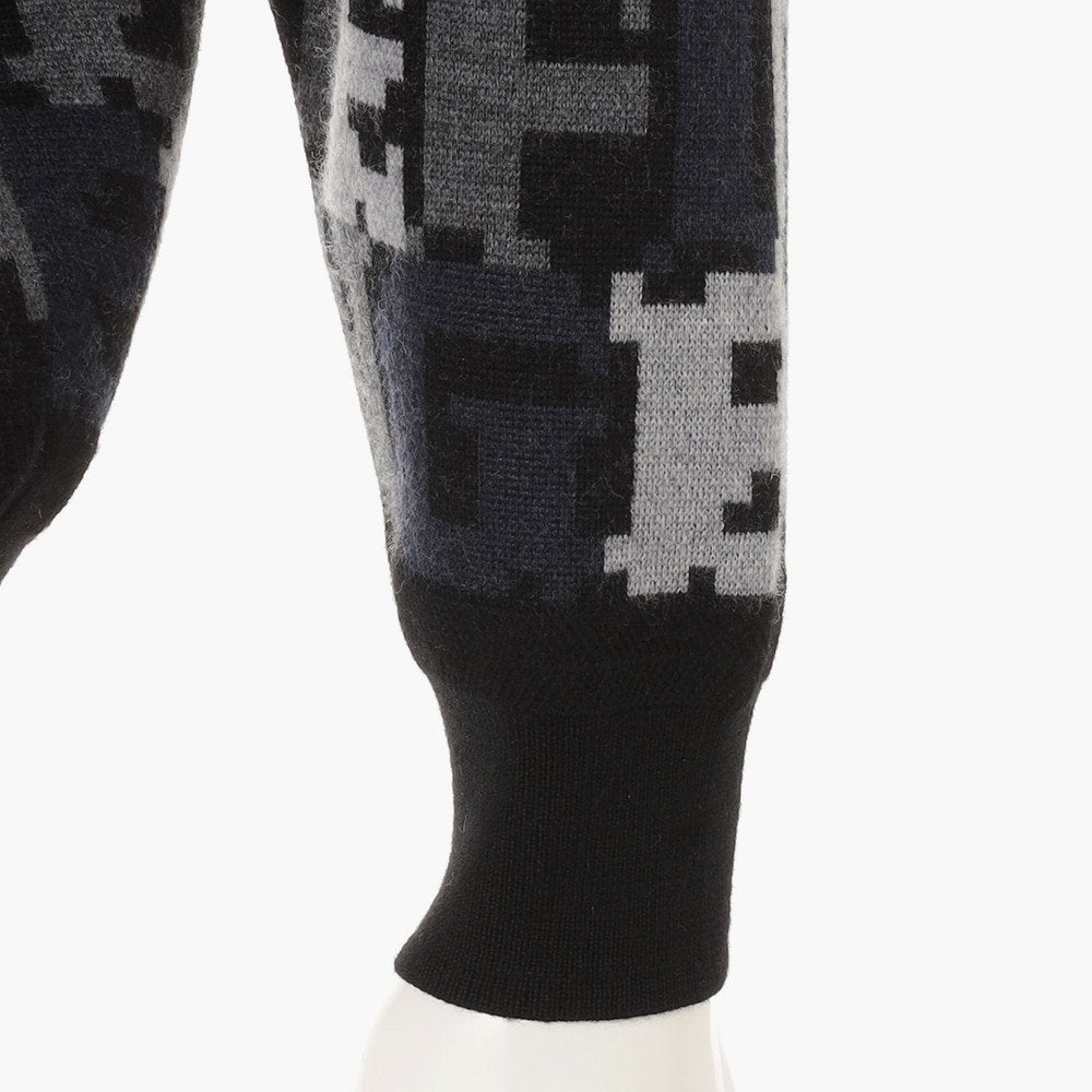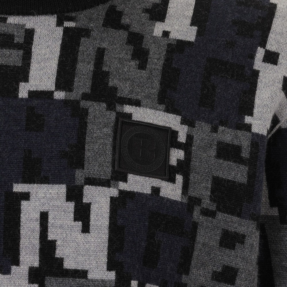 スタイリングにエッジを効かせるダブルジャガードのニットプルオーバーは、BREIFINGロゴをカモフラージュ柄のように配置した総柄デザインが特徴的。