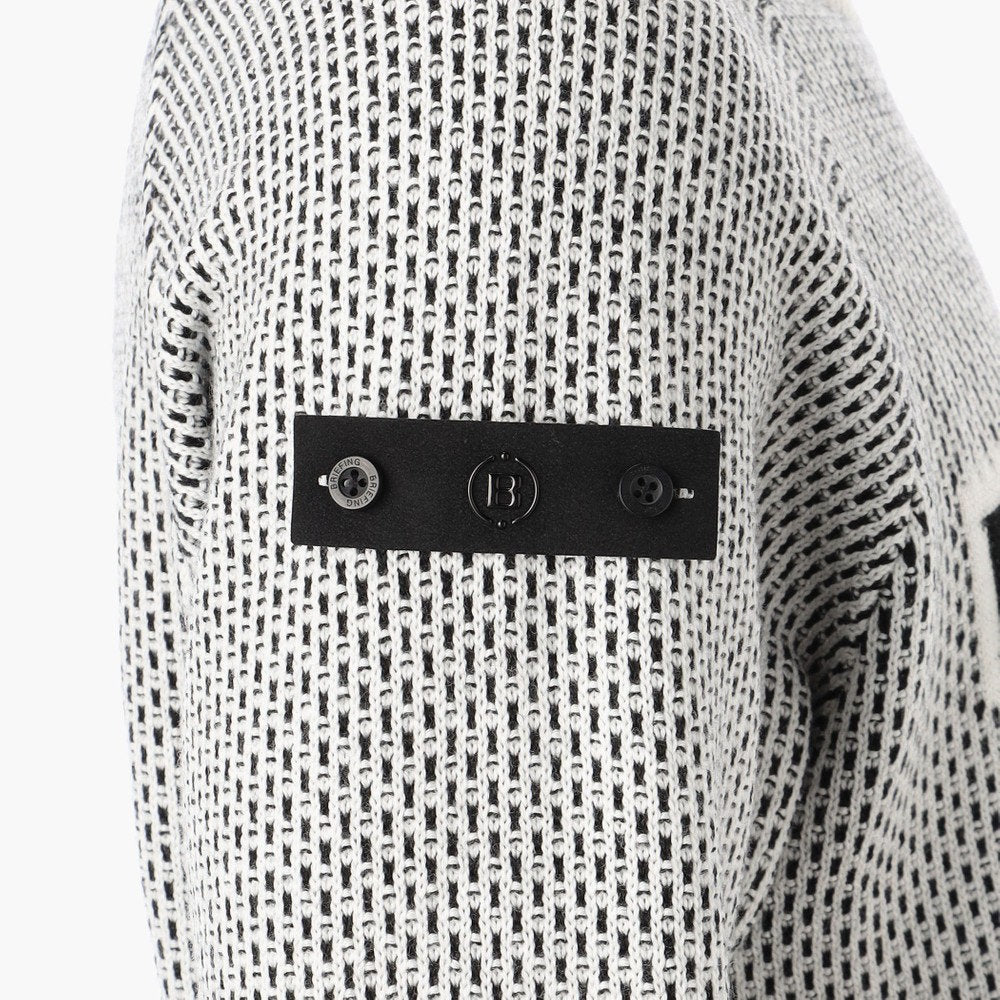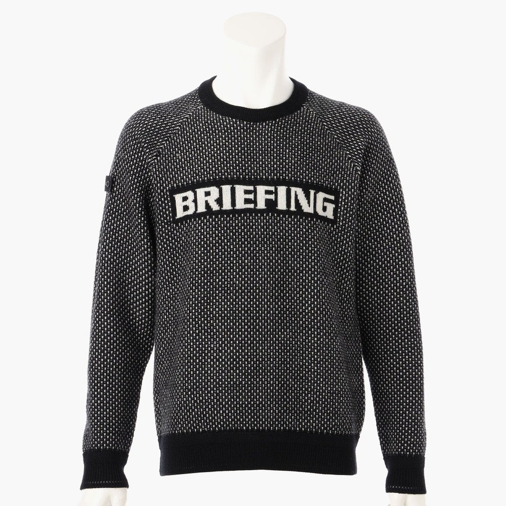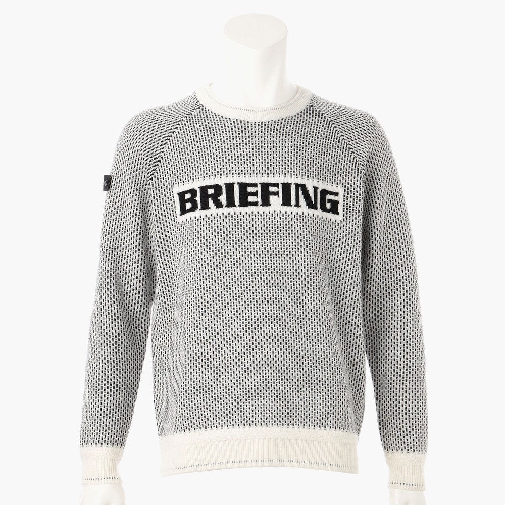 ・編みでされたBRIEFINGロゴ、袖に配したワッペンがさりげないアクセントに。
