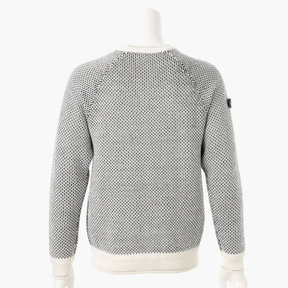 上質なメリノウールを用いたクルーネックニットに、カレッジスウェット風のデザインを落とし込みました。