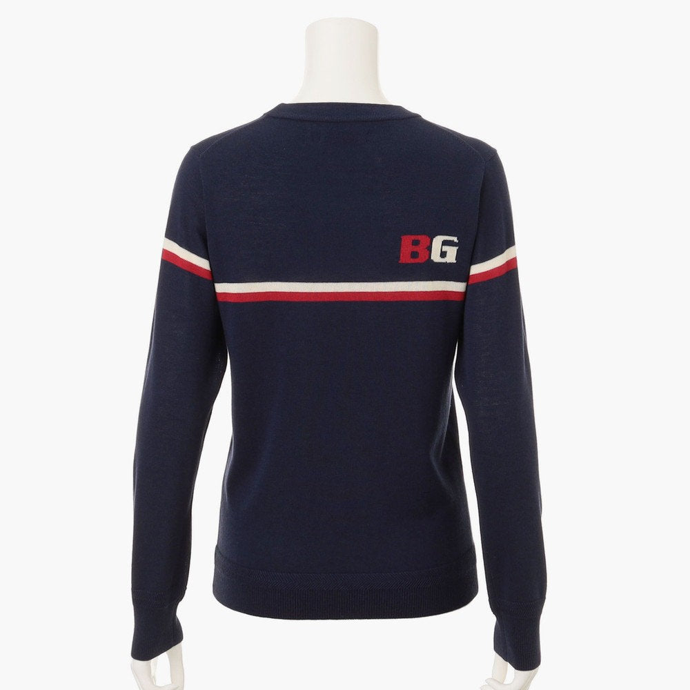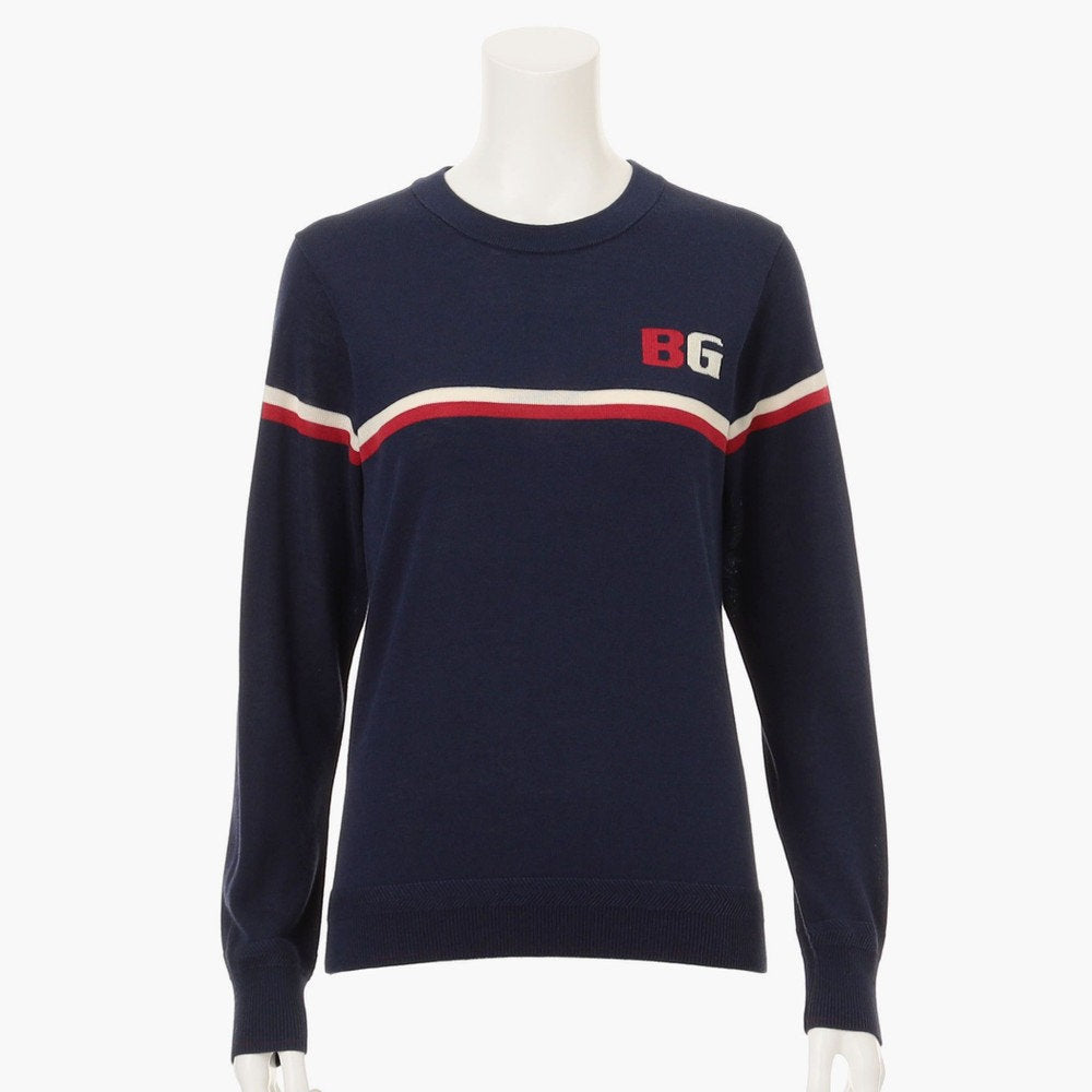 トリコロール配色を落とし込んだクルーネックニットは、コーディネートの主役アイテムに最適。