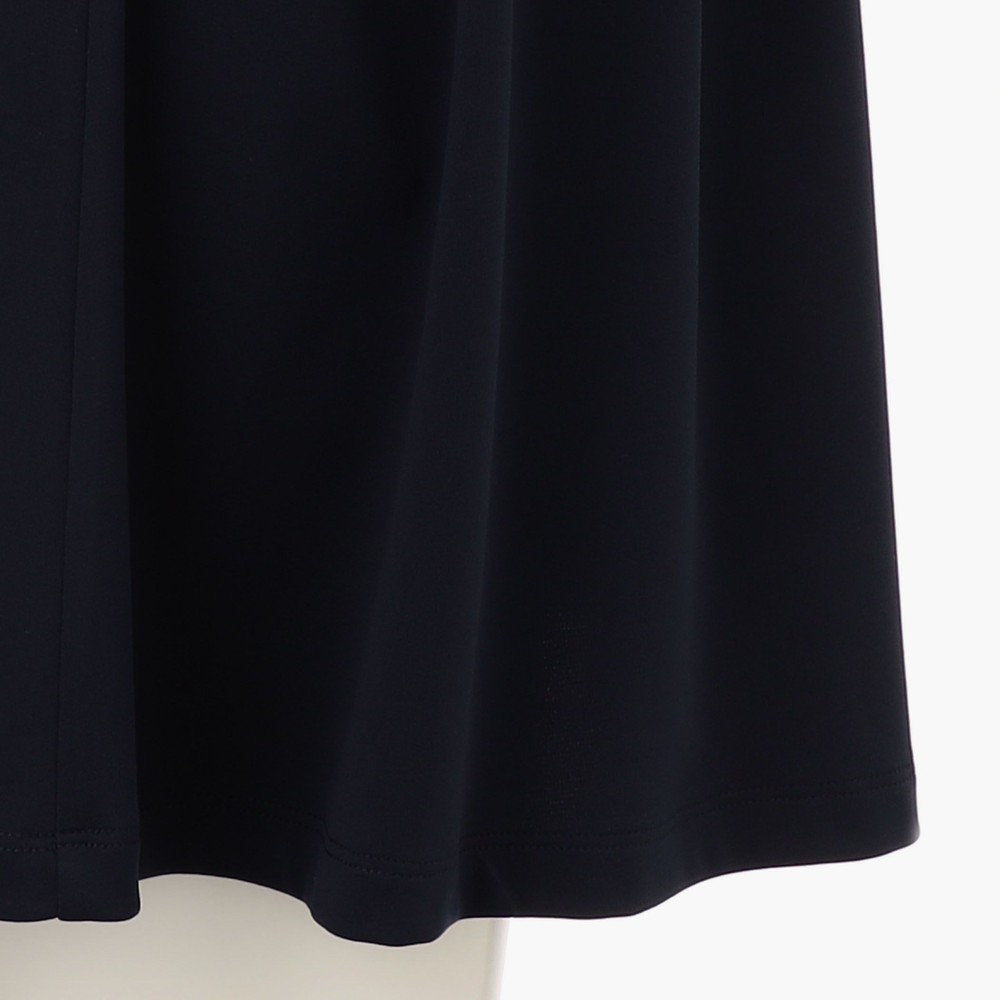 ジャージ素材を使用しTシャツ感覚で着用できるワンピースですが、ウエスト切り替えのシルエットやプリーツデザインを採用することで、上品かつレディライクな雰囲気あるルックスに仕立てました。