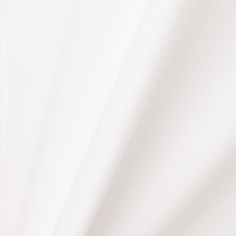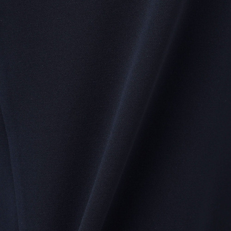 高密度に編み上げた編地の中に高弾性の糸を配置して全体を締めあげることで、たらつきにくく織物のようなハリ・コシと、ニット素材ならではの伸縮性を兼ね備えています。