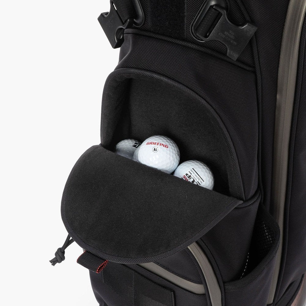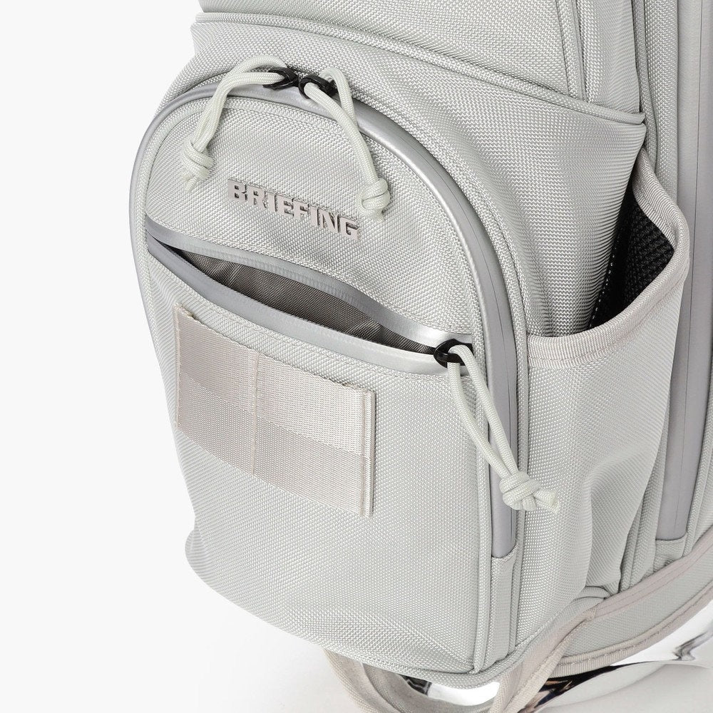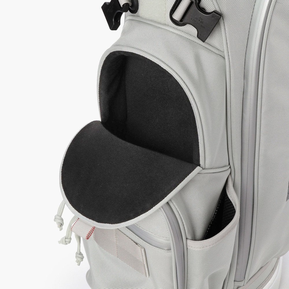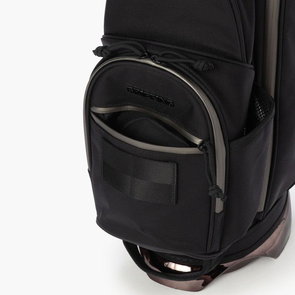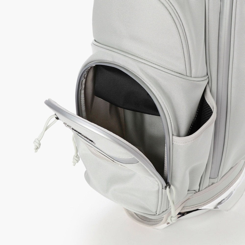 ・フードやレインウェアなど嵩張るアイテムの収納に便利な両サイドのポケットは、開口部のカッティングを変更。新たにファスナーポケット(小)を追加し、ラウンド時の実用性を高めた仕様に。