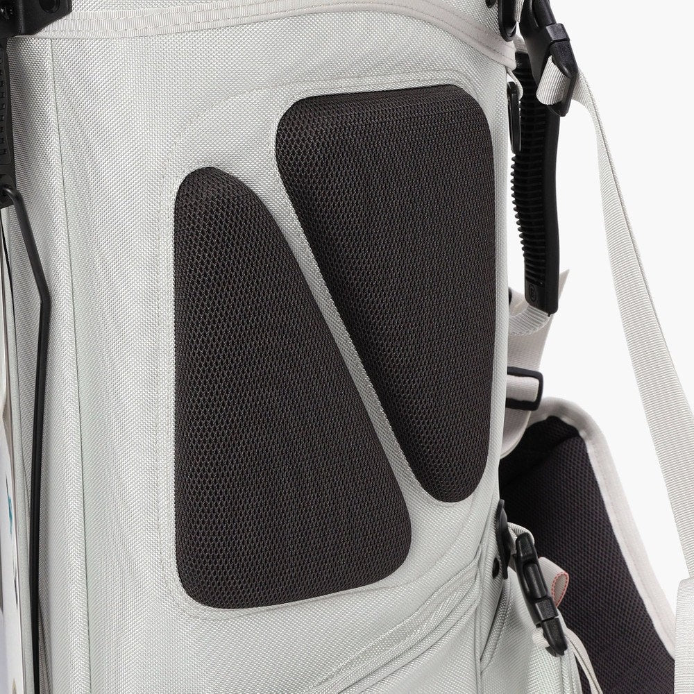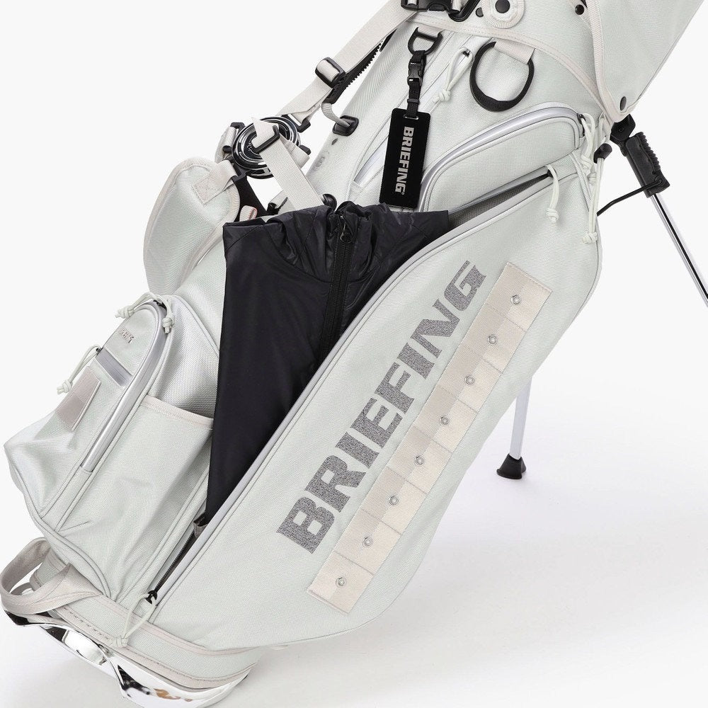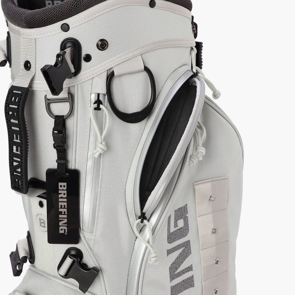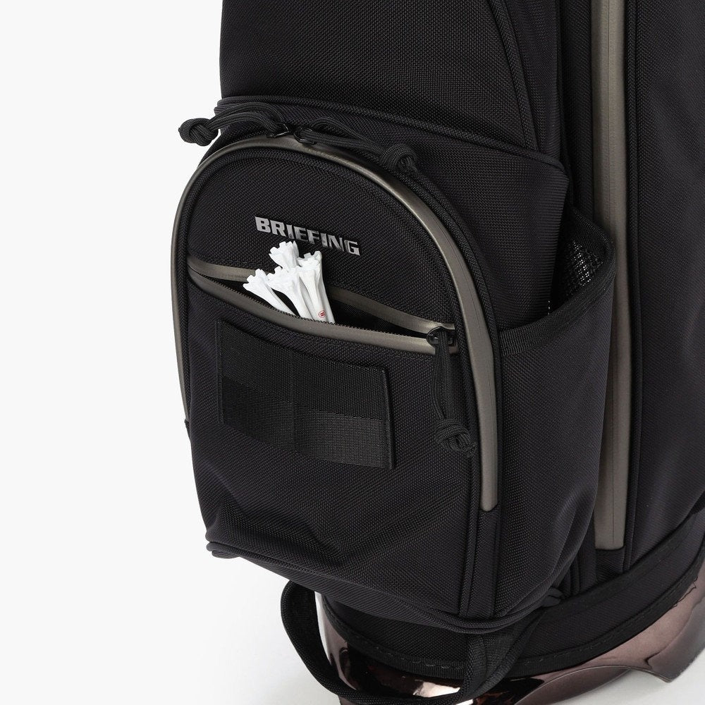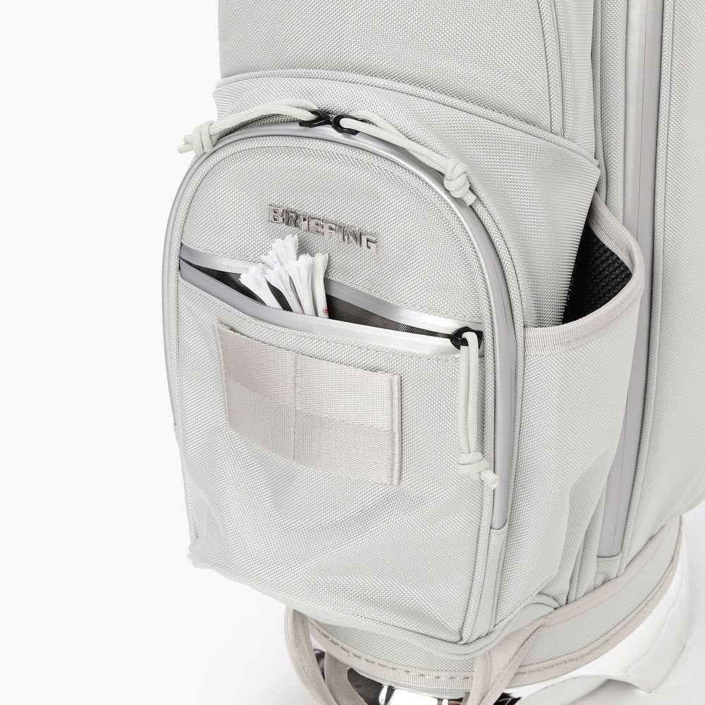 ・フードやレインウェアなど嵩張るアイテムの収納に便利な両サイドのポケットは、開口部のカッティングを変更。新たにファスナーポケット(小)を追加し、ラウンド時の実用性を高めた仕様に。