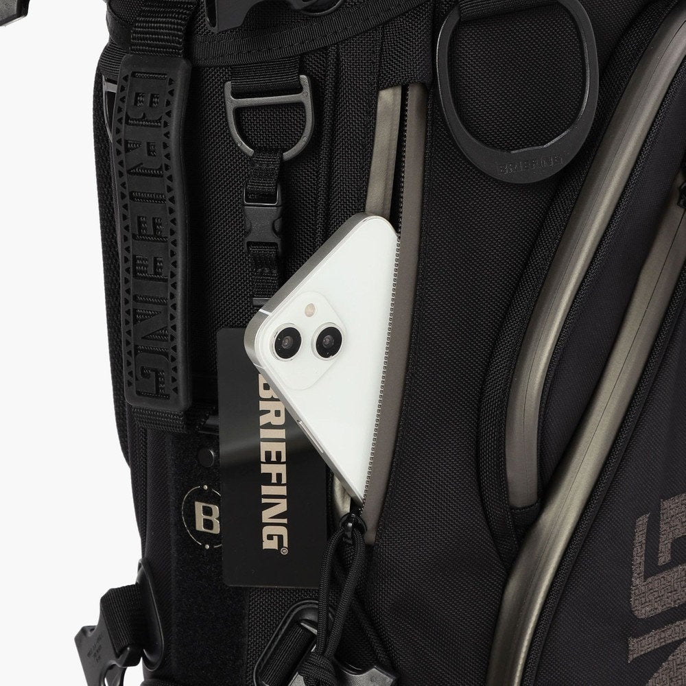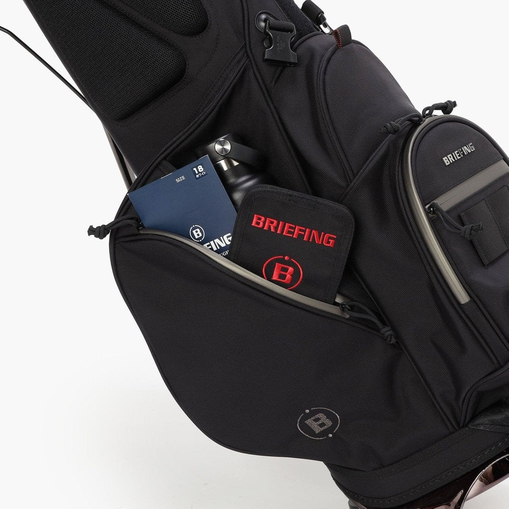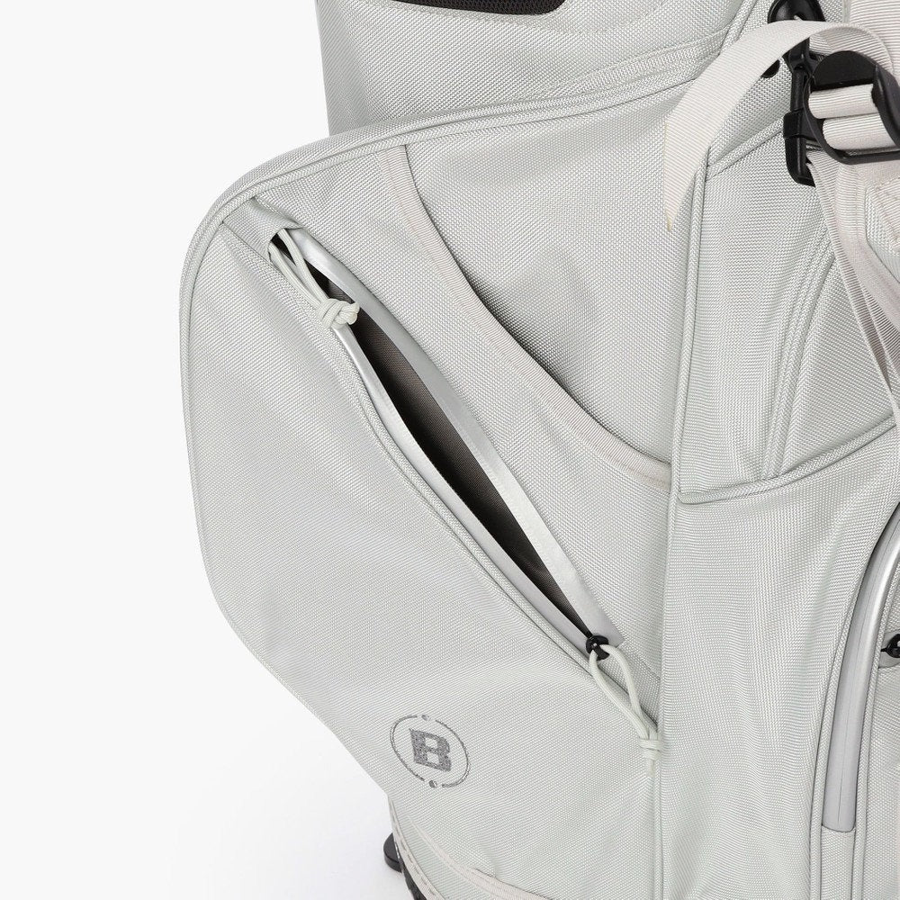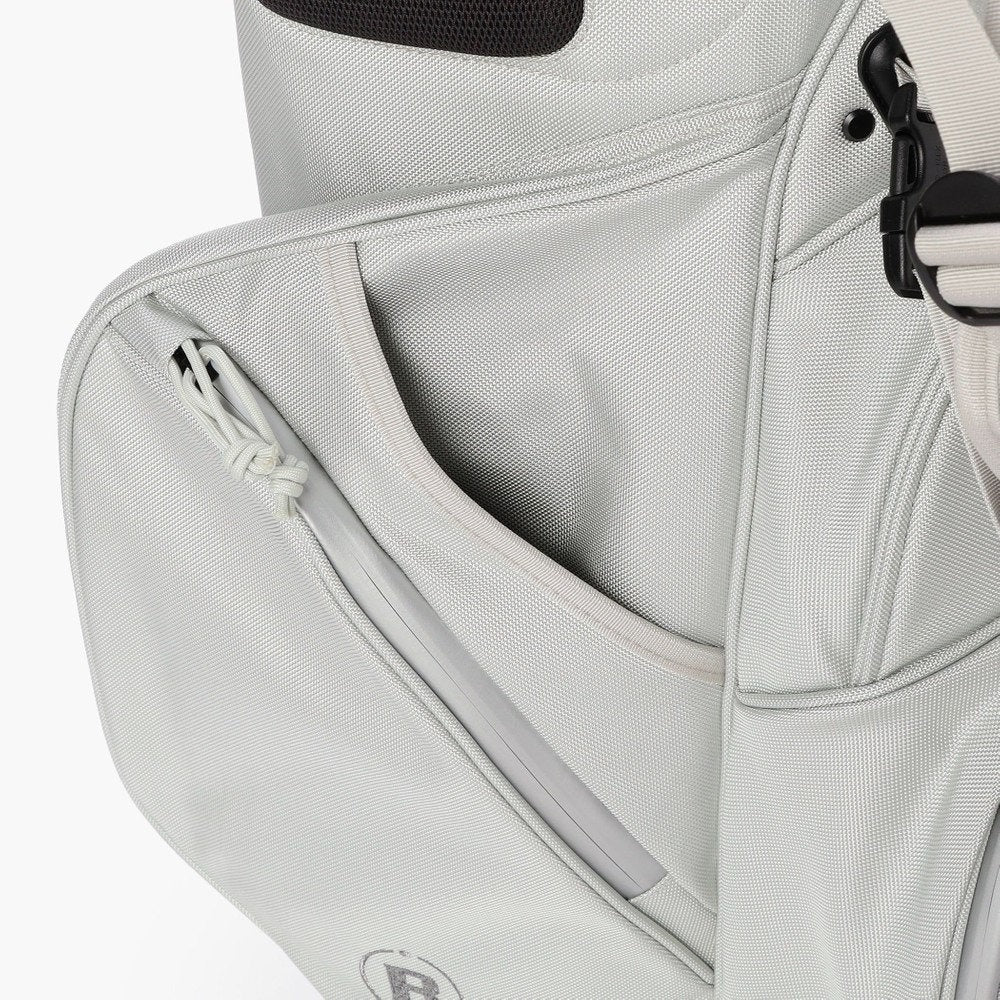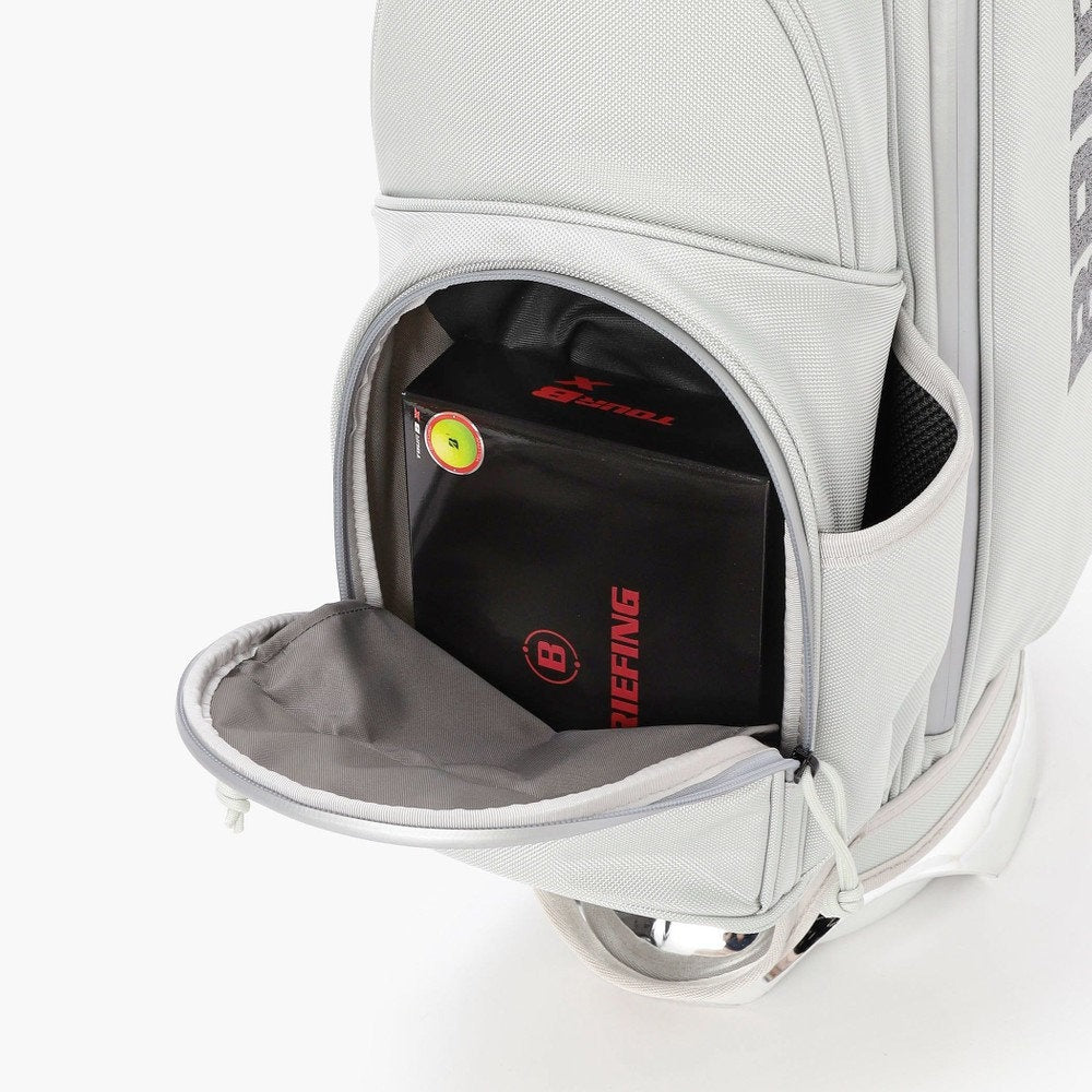 ・フードやレインウェアなど嵩張るアイテムの収納に便利な両サイドのポケットは、開口部のカッティングを変更。新たにファスナーポケット(小)を追加し、ラウンド時の実用性を高めた仕様に。