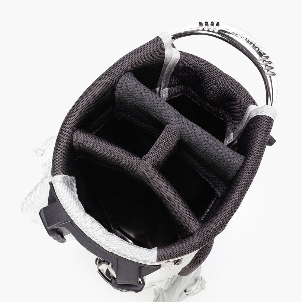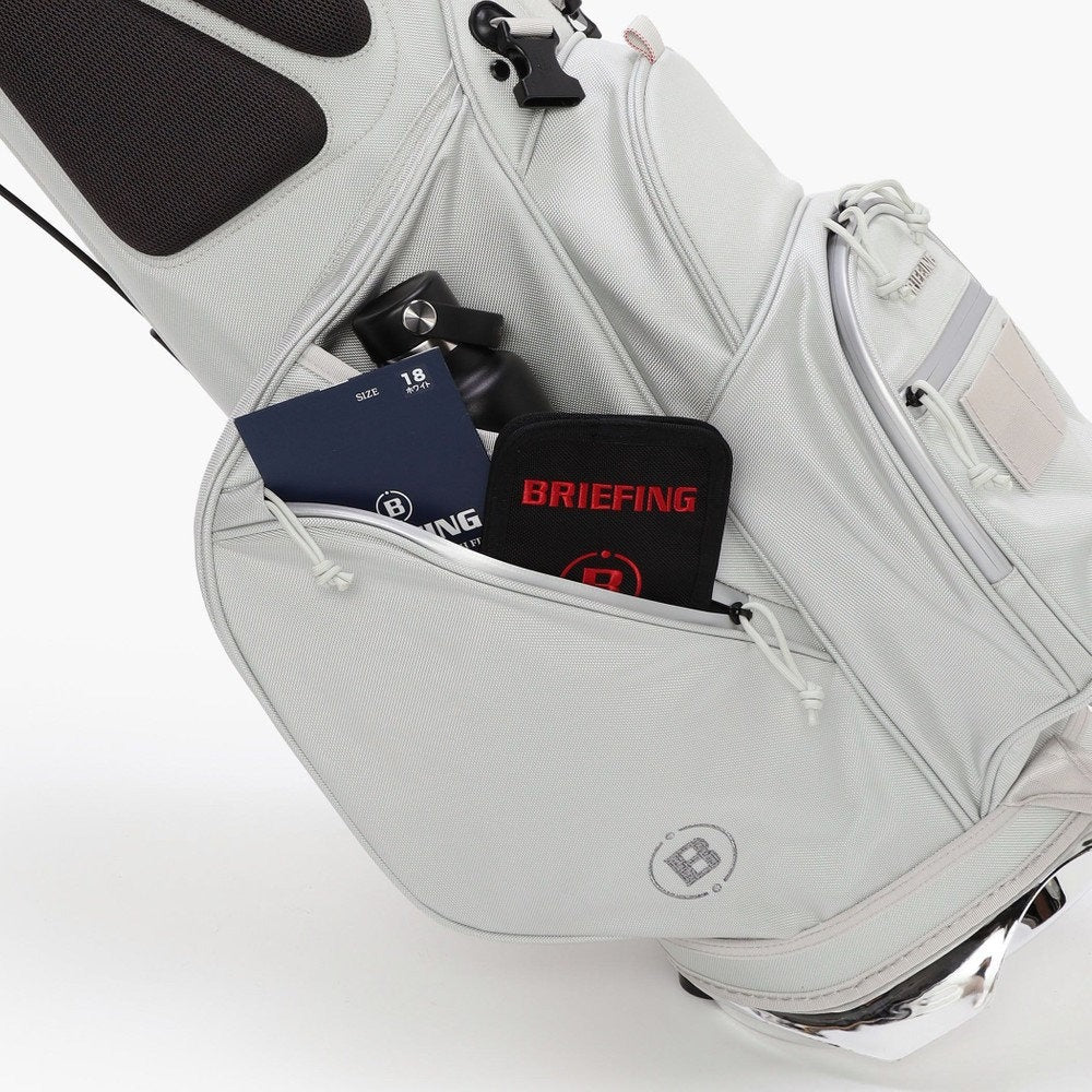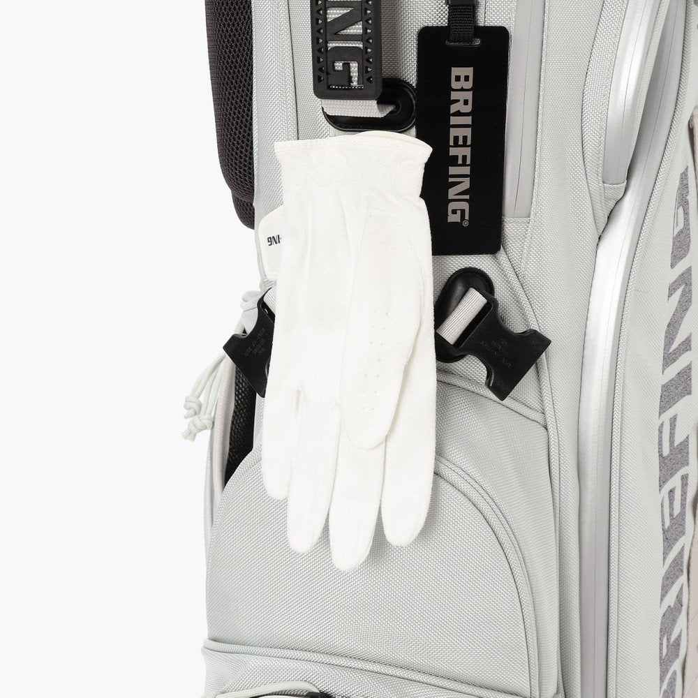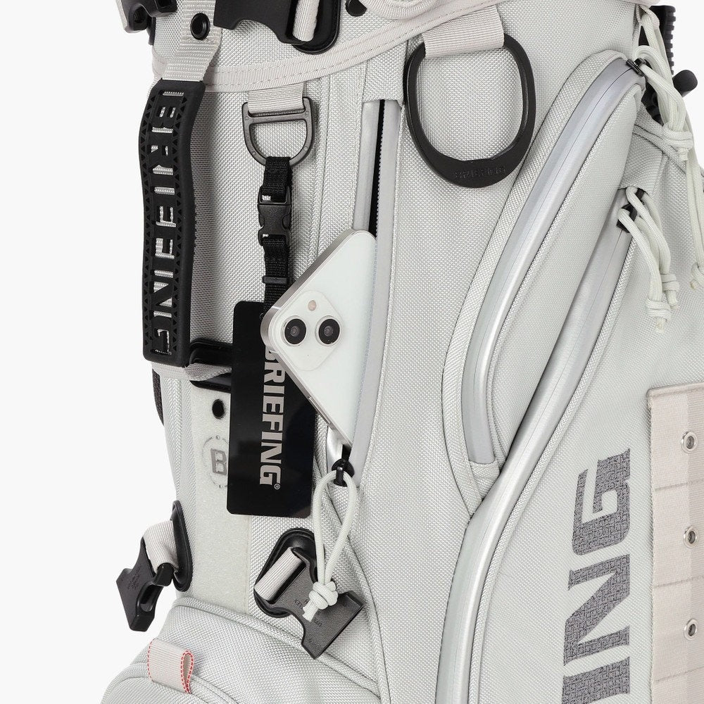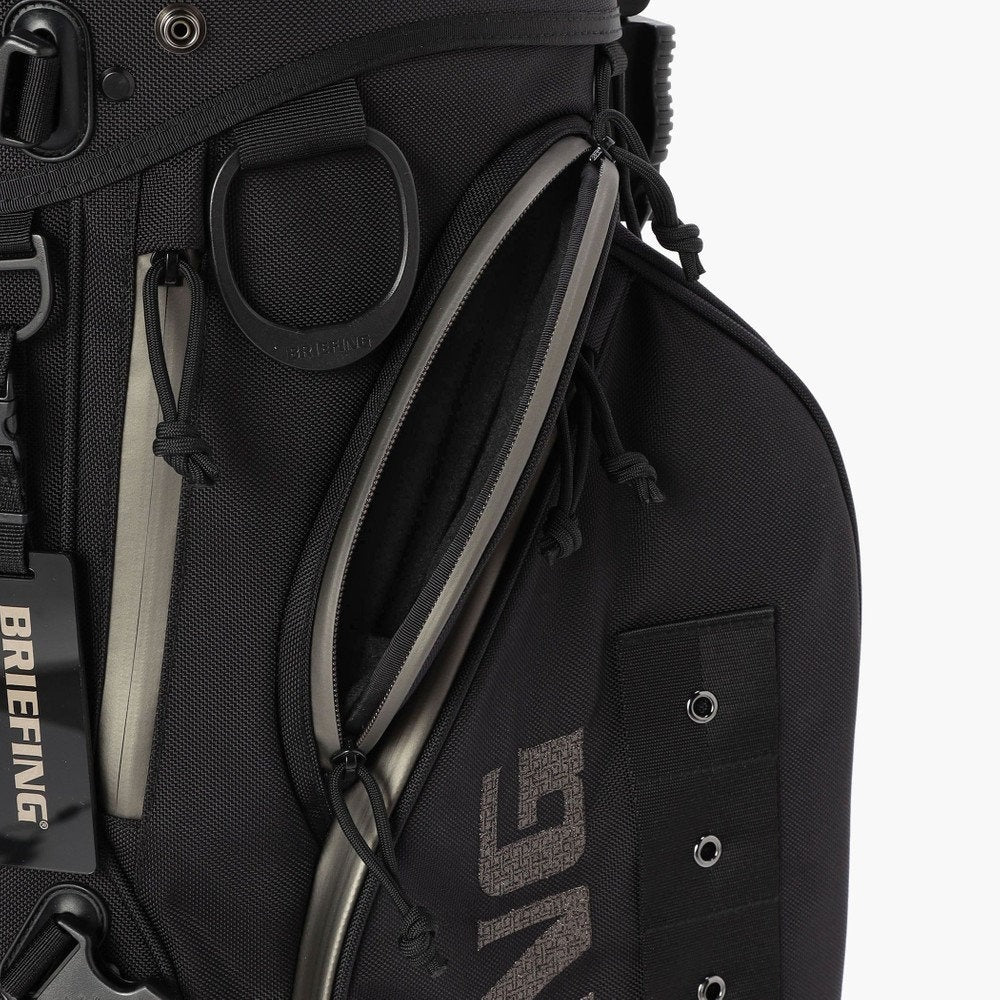 ・フードやレインウェアなど嵩張るアイテムの収納に便利な両サイドのポケットは、開口部のカッティングを変更。新たにファスナーポケット(小)を追加し、ラウンド時の実用性を高めた仕様に。