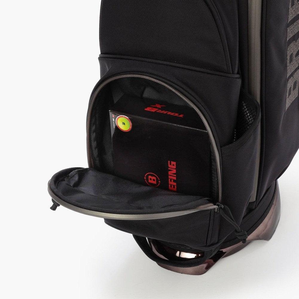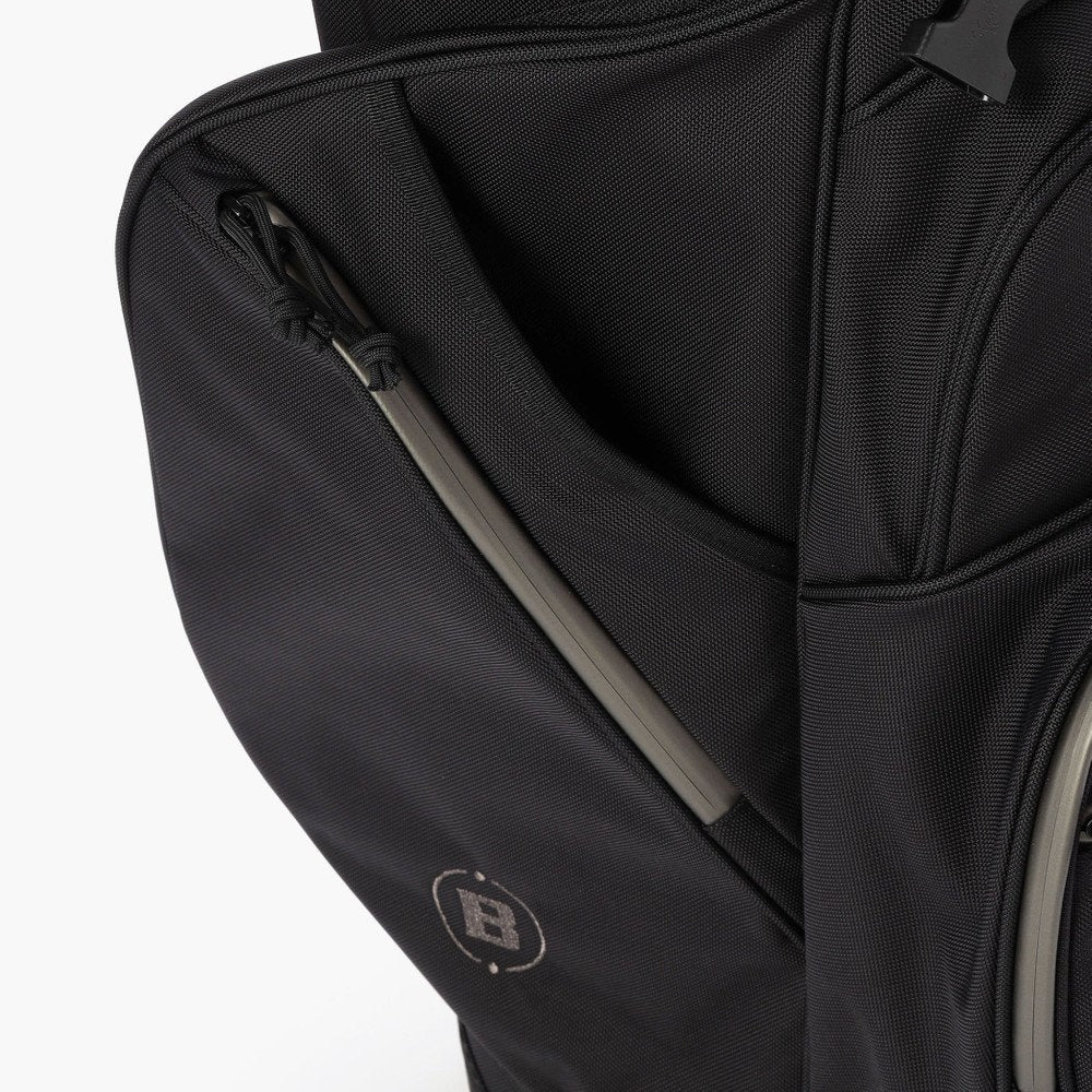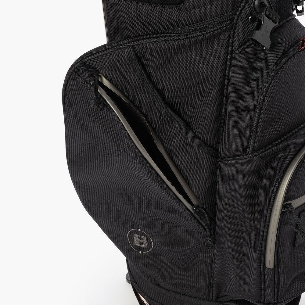 ・レインウェアなどの嵩張るアイテムの収納に便利な大型ポケット、ゴルフボール1ダースを収納できるポケット、保冷機能を備えたボトルポケットなど多数配置。