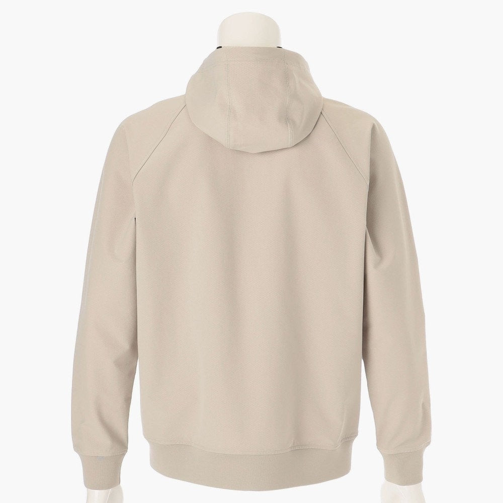 ・首元を優しく包むフィット感の襟腰高めのフードは、ジップを上まで締めることで衣服内部へ風が侵入するのを防ぎます。