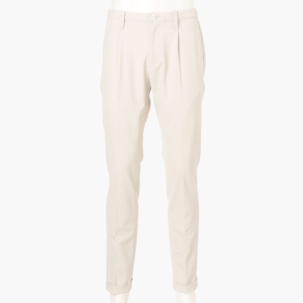 ・素材のもつ伸縮性と腰回りにゆとりを生み出すウエストのタックによって、細身のシルエットでありながら、窮屈さを感じさせない抜群の穿き心地に。