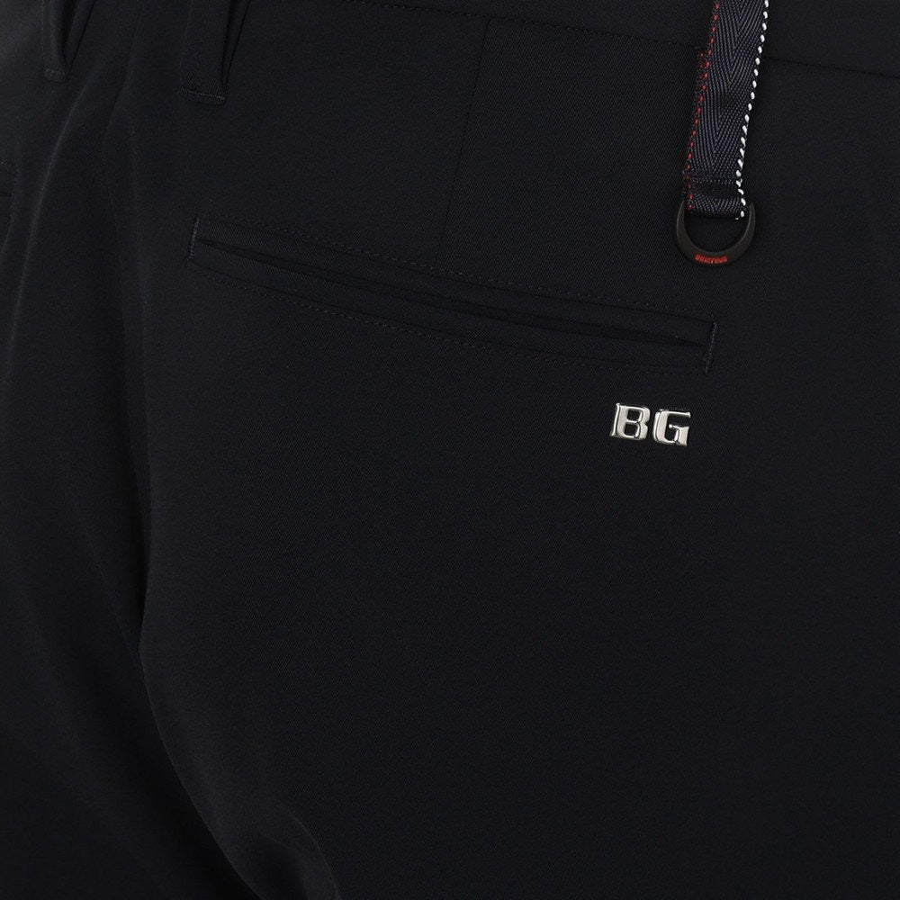 細身のシルエットにダブル仕立ての裾がスポーティなボトムスは、ゴルフシューズとの相性も抜群。