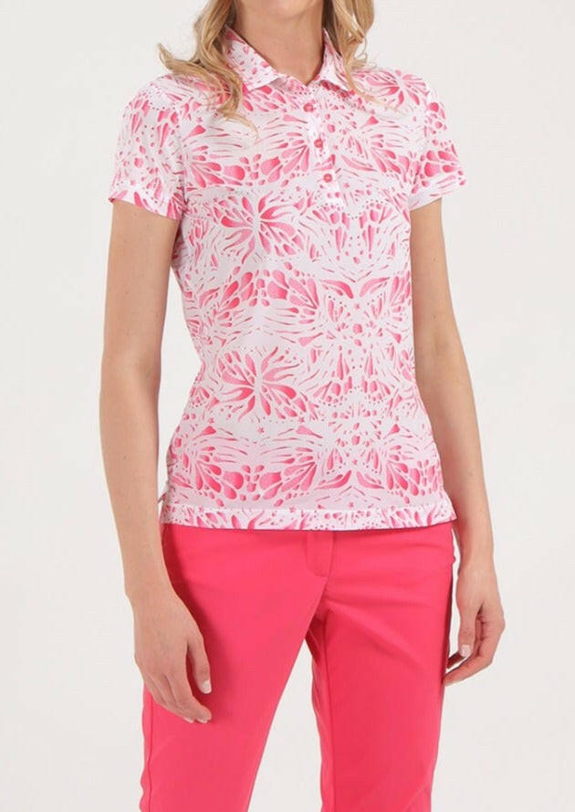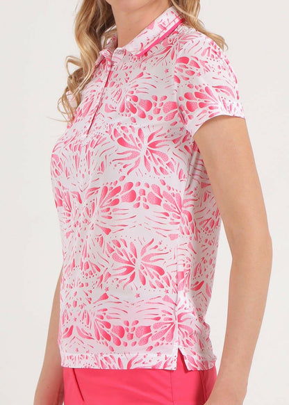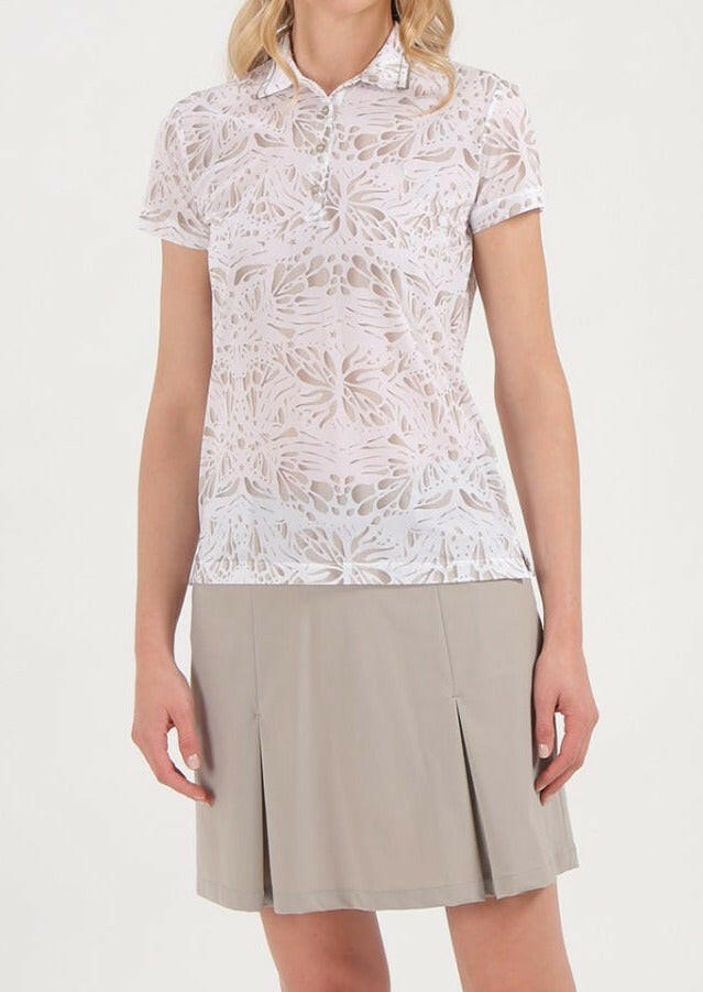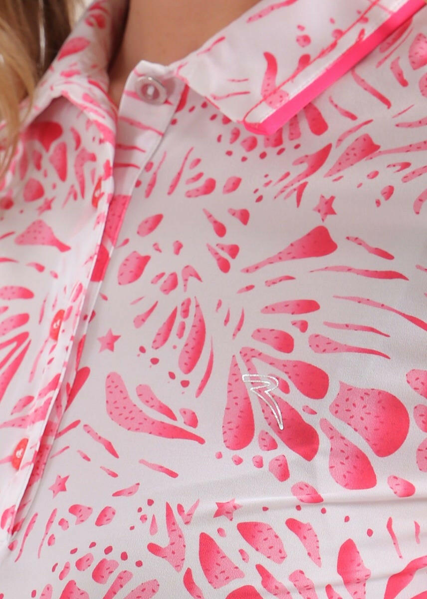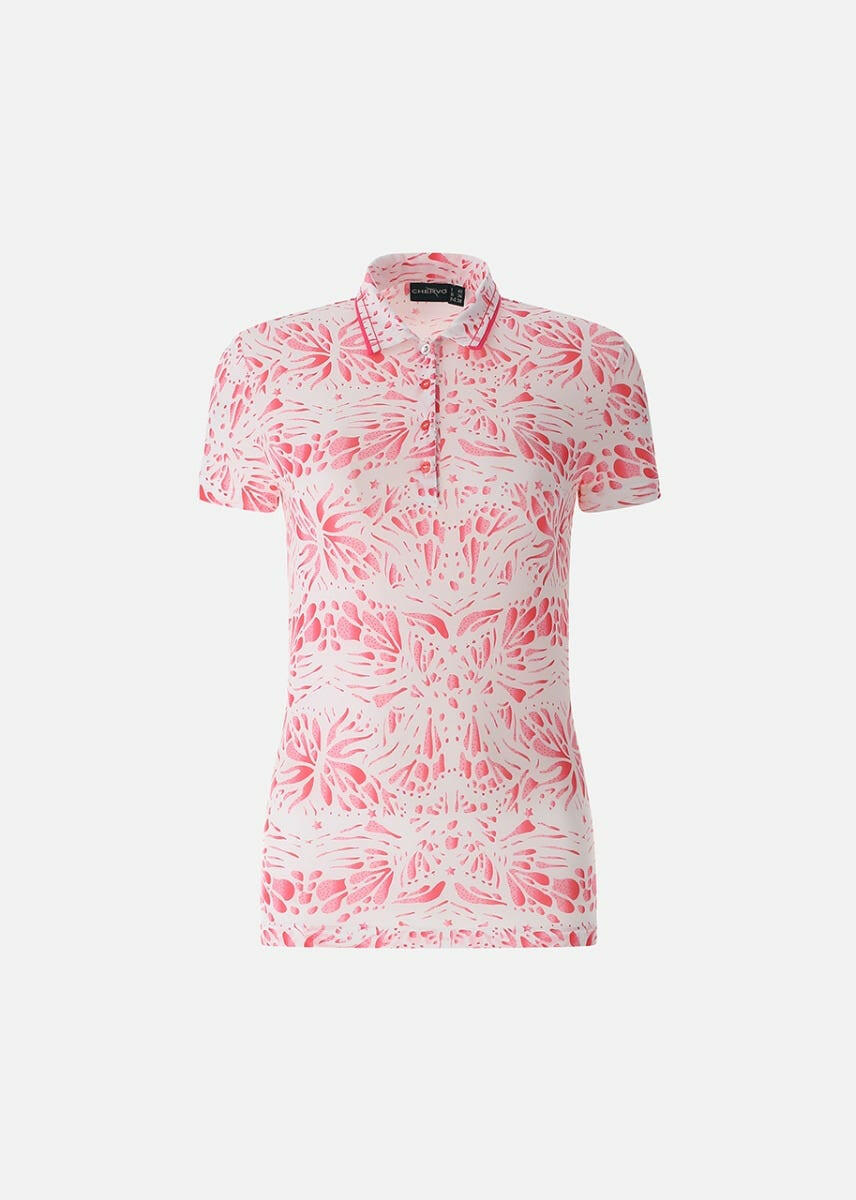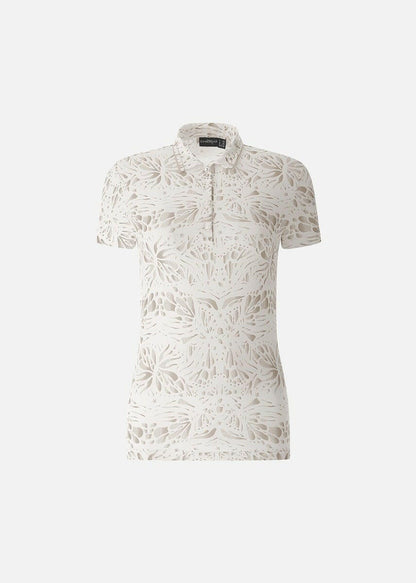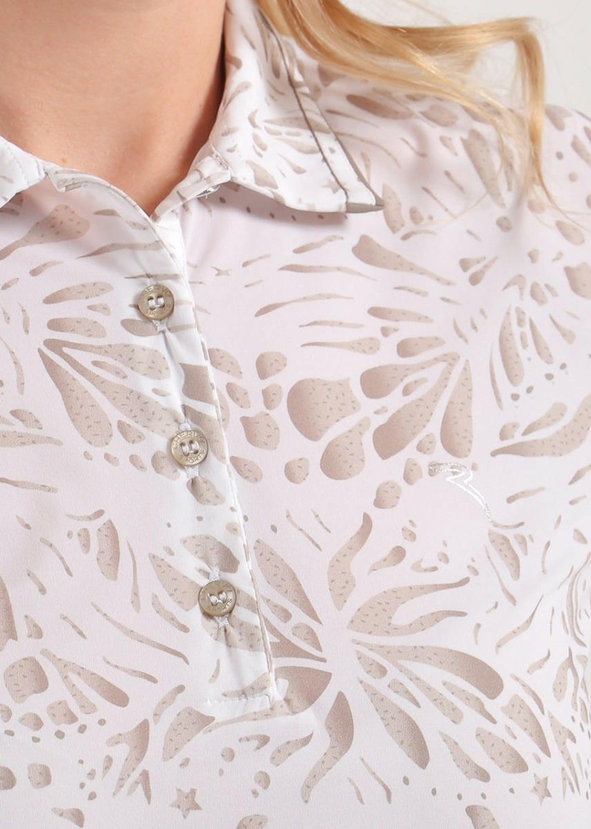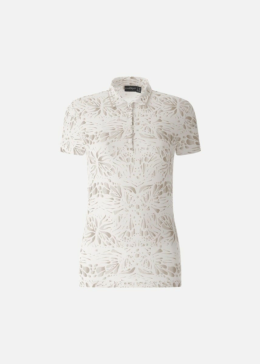 ATANASIA-軽量で快適なストレッチ・ジャージー素材の女性用ポロシャツは、シーズン終盤の気温と柔軟性に適しています。サンブロックとドライマティックのポリアミド素材が有害な紫外線から守り、爽やかな着心地を約束します。刺繍とコントラストで飾られたシャツ襟が、総柄の「プリント・ボックス」柄を引き立てます。シルバートーンのトップボタンが繊細な箔押しロゴのディテールを引き立てます。