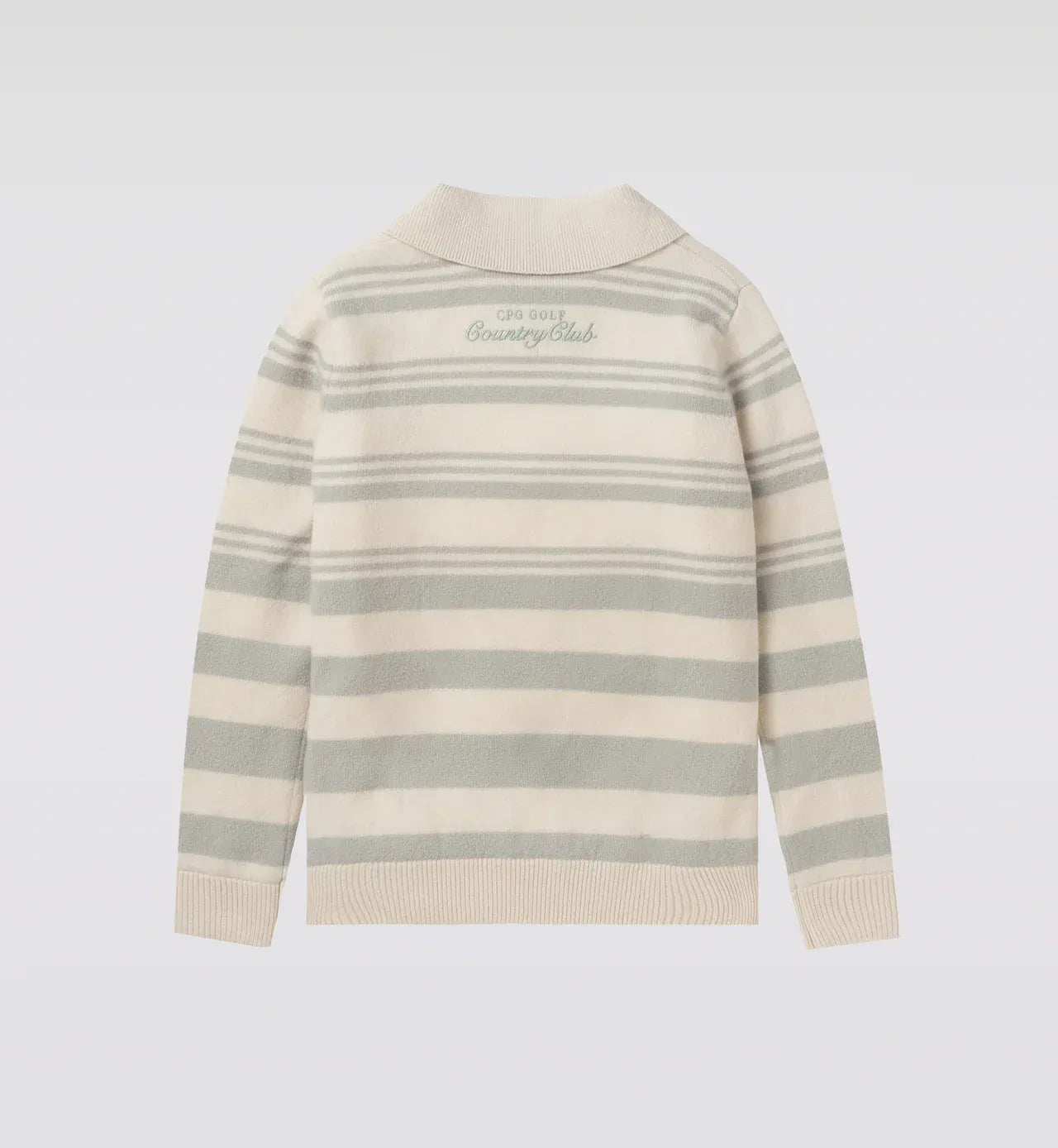 エクストラファインメリノを使用した肉厚のハーフジップニット。裏側には風を通さないタフタ生地を使用し、真冬も暖かく快適に過ごせます。異なる細さのボーダーが目を惹くデザインで、スカートやボトムスどちらも合わせやすいアイテムです。