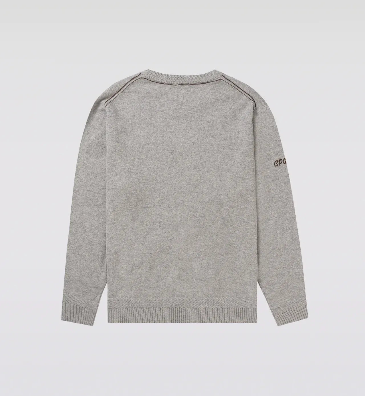 カシミア混エクストラファインメリノウールの天竺編みプルニットにゴルファーをプリントと刺繍で表現しました。袖口リブ上、裾口リブ上にへリンボン柄編みを入れ、衿も組織編みを入れ、凝った仕様にしています。背中のチェーンSTラインもデザインポイントの1つです。ゴルフを愛する幅広い年齢のお客様に着て頂きたい一枚です。