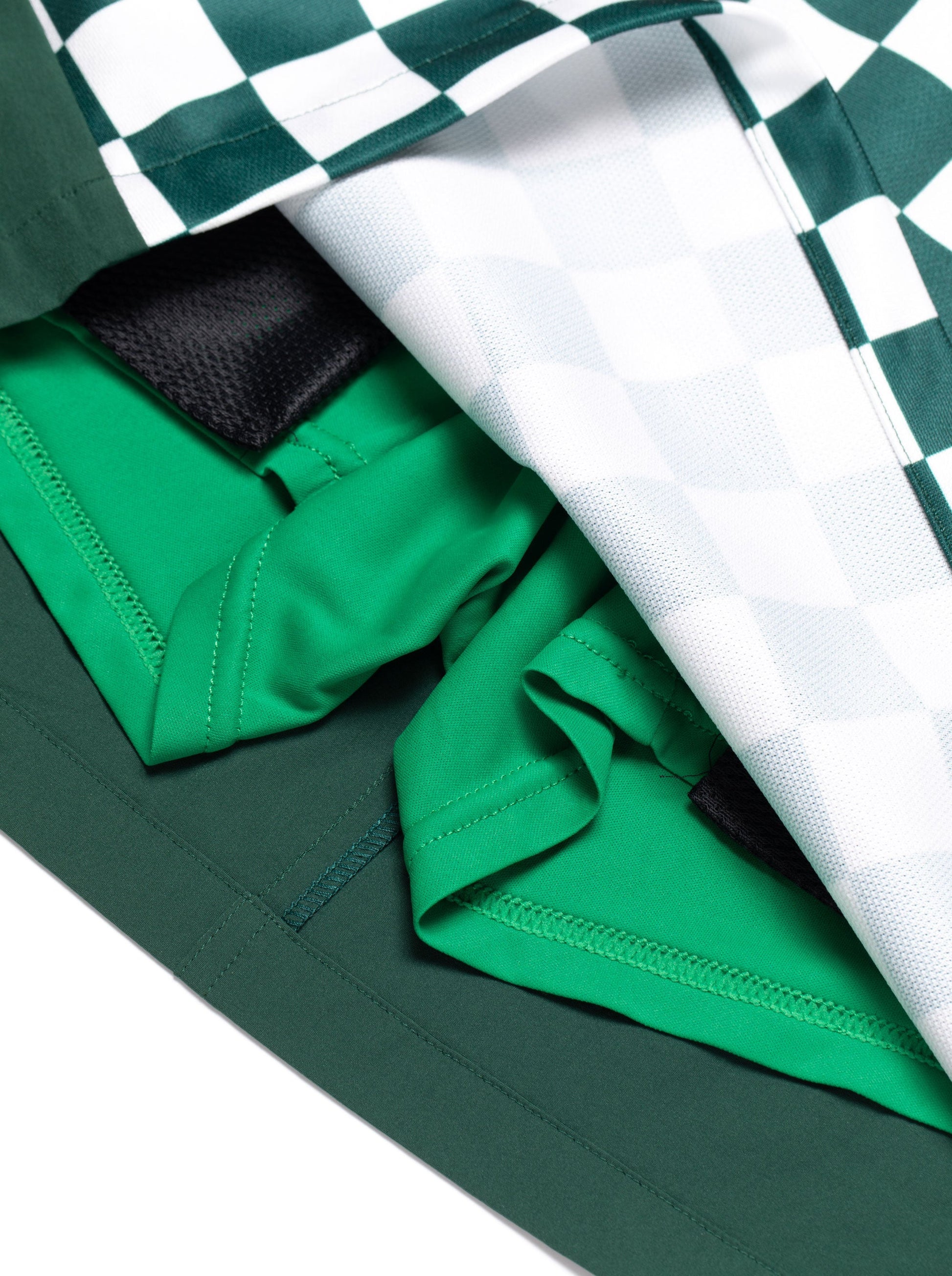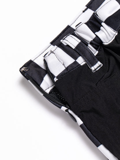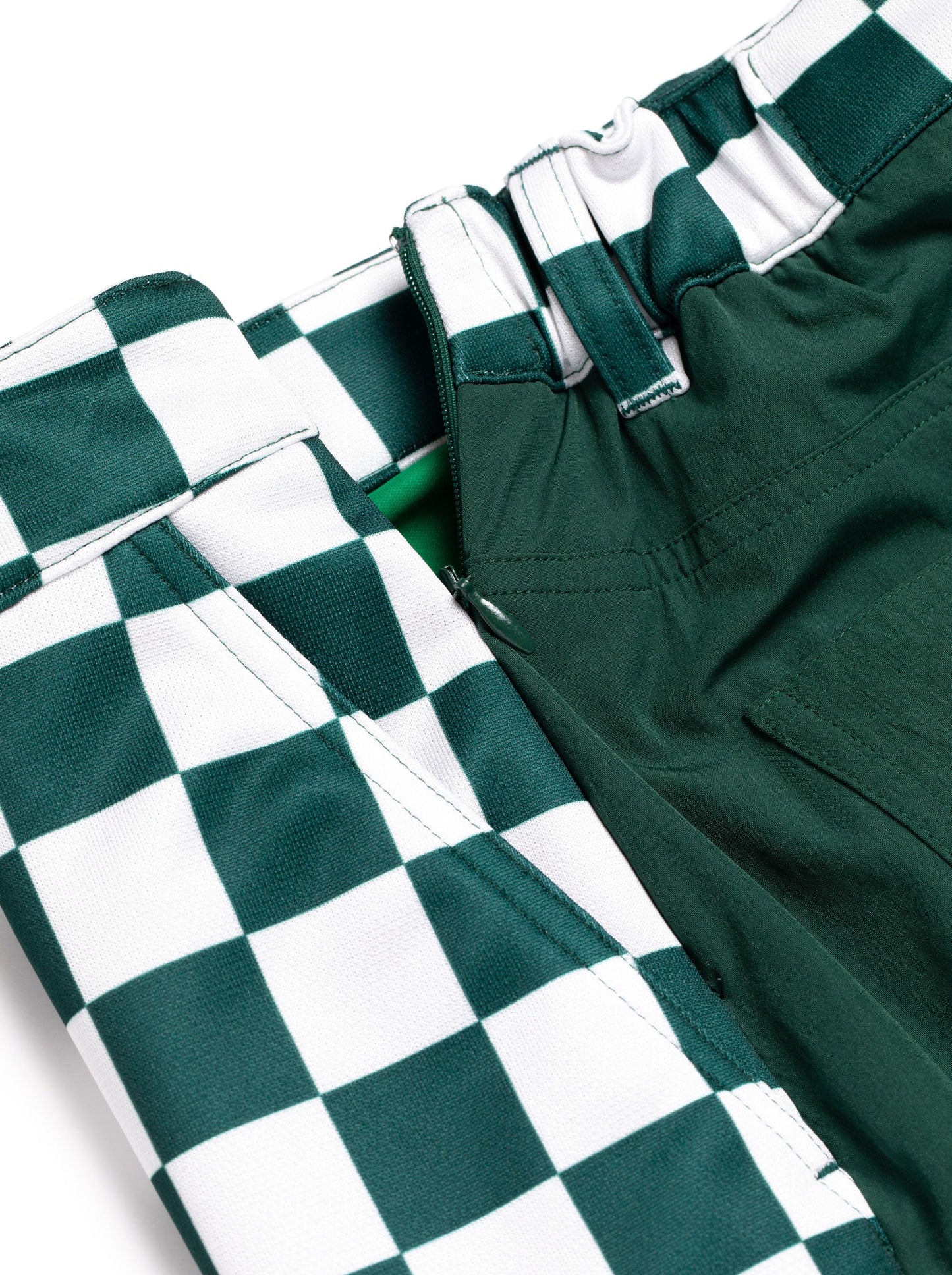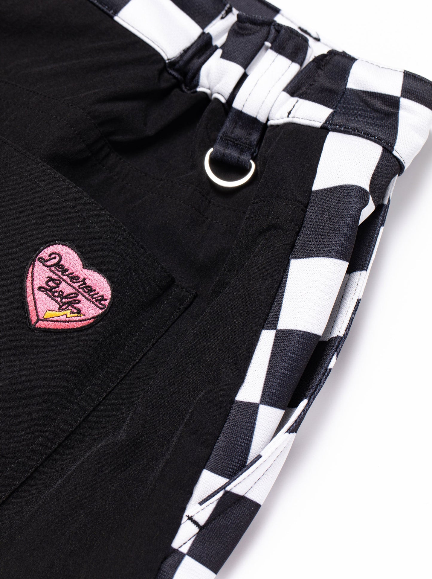 前身に光沢感のあるポリエステル100%素材にチェッカープリントし、後身にナイロンPU素材を使用したスカート。すっきりしたシルエットが女性らしさを際立たせます。