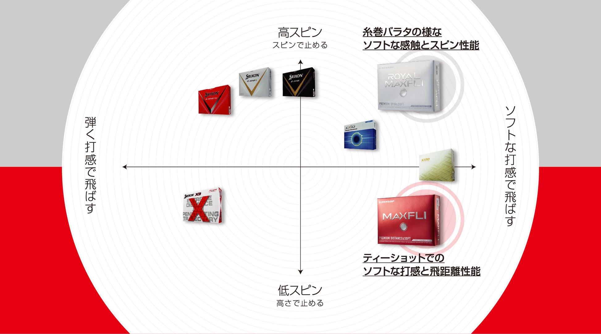 ●極薄スーパーウレタンカバーを搭載した超ソフトコンプレッション3ピース。スピンコントロールとビッグドライブを実現