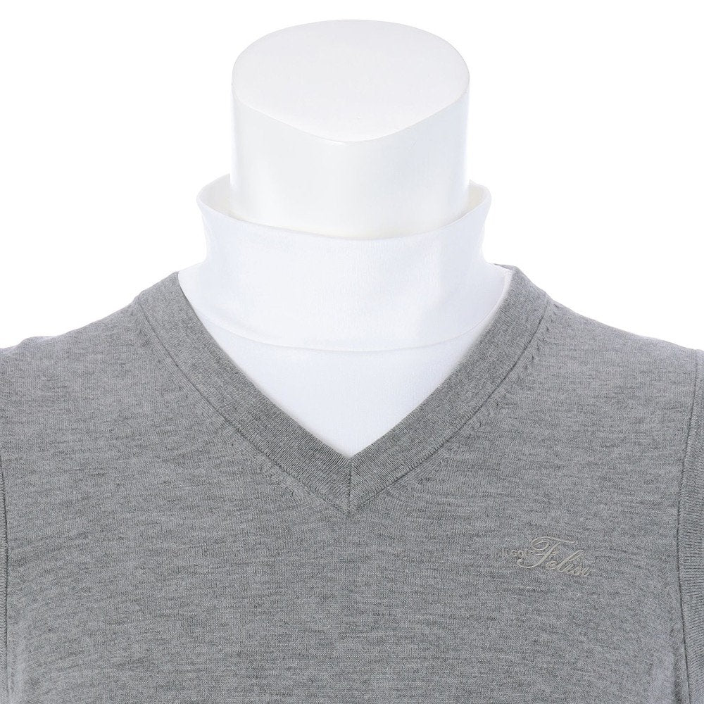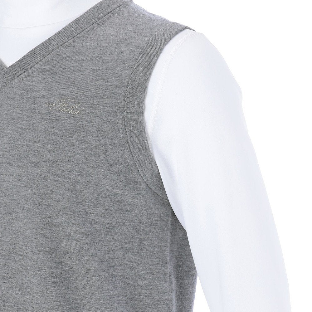 品の良さが伝わるハイゲージ編みのVネックベスト。上品な生地の落ち感を愉しめつつ、メリノウールによる吸湿速乾性、抗菌作用、保温性など天然素材由来の機能性も備えています。日常着としての上質さと、アクティブなゴルフシーンに対応する機能性を持ち合わせた、ブランドらしい提案のセーターです。前面にFelisi IL GOLF(フェリージ イル ゴルフ)のブランドロゴを刺繍、背面にはメタルプレートをあしらい、シンプルなデザインに華やかさを取り入れました。今季Felisi Golf(フェリージ ゴルフ)を象徴するディテールです。