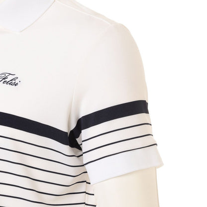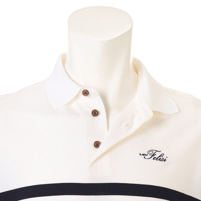 爽やかなマリンストライプがグリーンビューに映えるポロシャツ。スポーツシーンに最適な優しい着心地と、大人に相応しい清潔感のあるルックスで、ゴルフシーンだけでなく日常着に活用しやすい上質さを持ち合わせています。前面にFelisi IL GOLF(フェリージ イル ゴルフ)のブランドロゴを刺繍、背面にはメタルプレートをあしらい、シンプルなデザインに華やかさを取り入れました。
