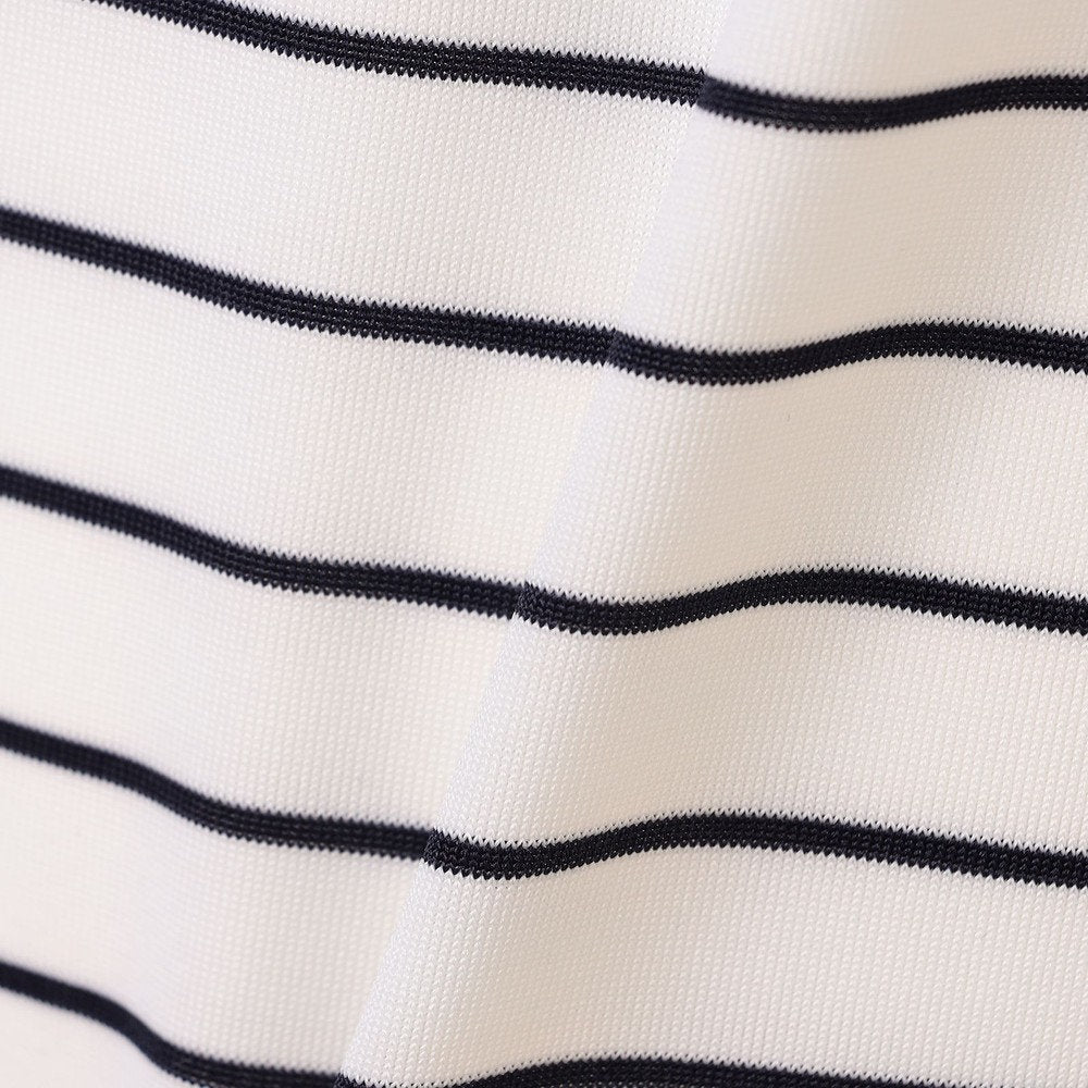 清涼感あふれるFelisi Golf オリジナルデザインのポリエステル素材。高いストレッチ性と吸水速乾性を備えており、ゴルフなどのスポーツシーンから日常使いに適しています。柄のデザインはベーシックなホリゾンタルストライプで構築。アクセントカラーにはイタリアらしい豊かな色彩の「AQUA」がラインアップ。シンプルな柄のため普段着にも合わせやすく、春夏秋の3シーズン着用可能。発色も良くコーディネートの幅を広げてくれます。