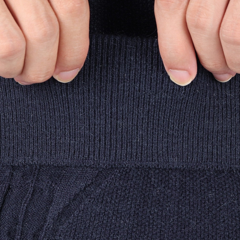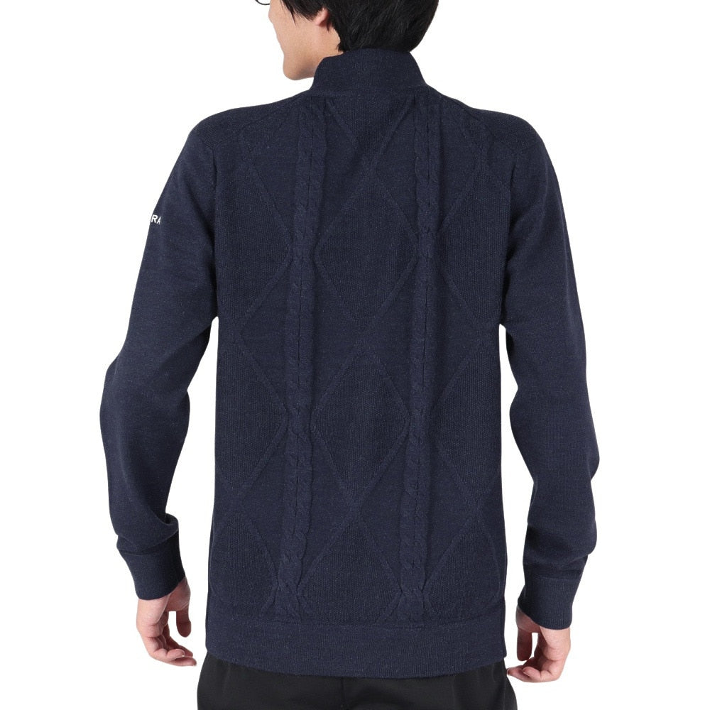 リブとカノコ柄を組み合わせたハーフジップニット。