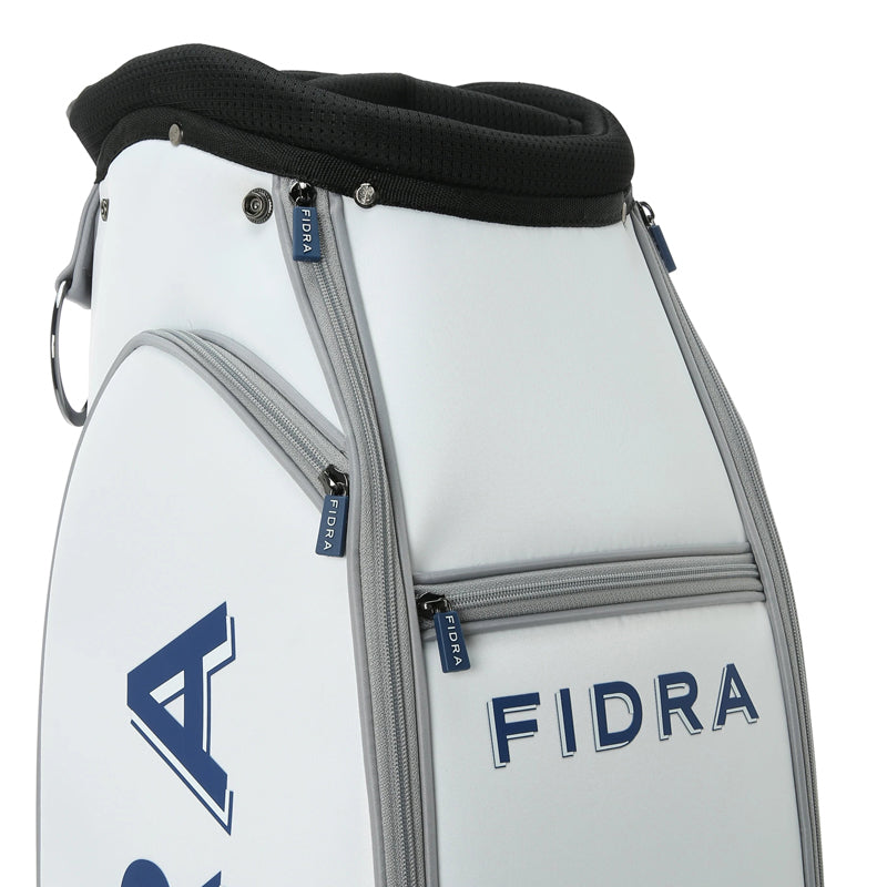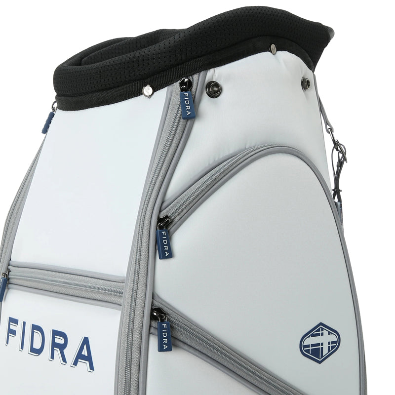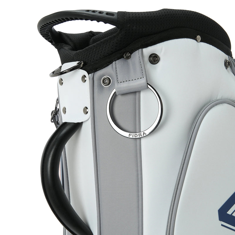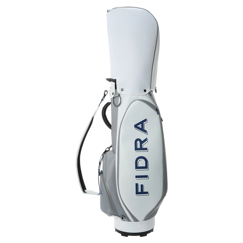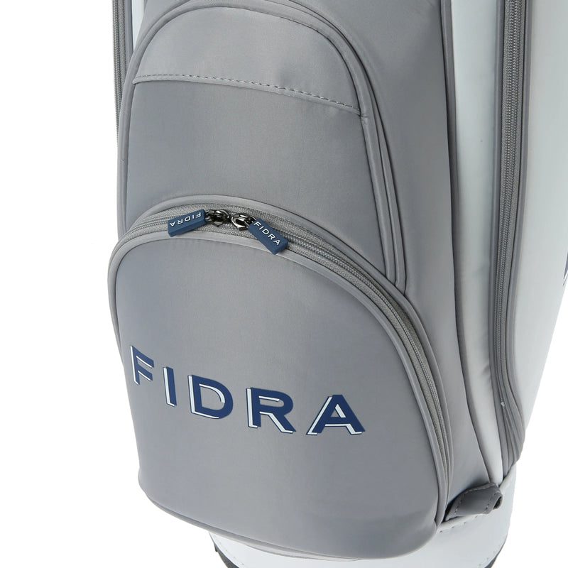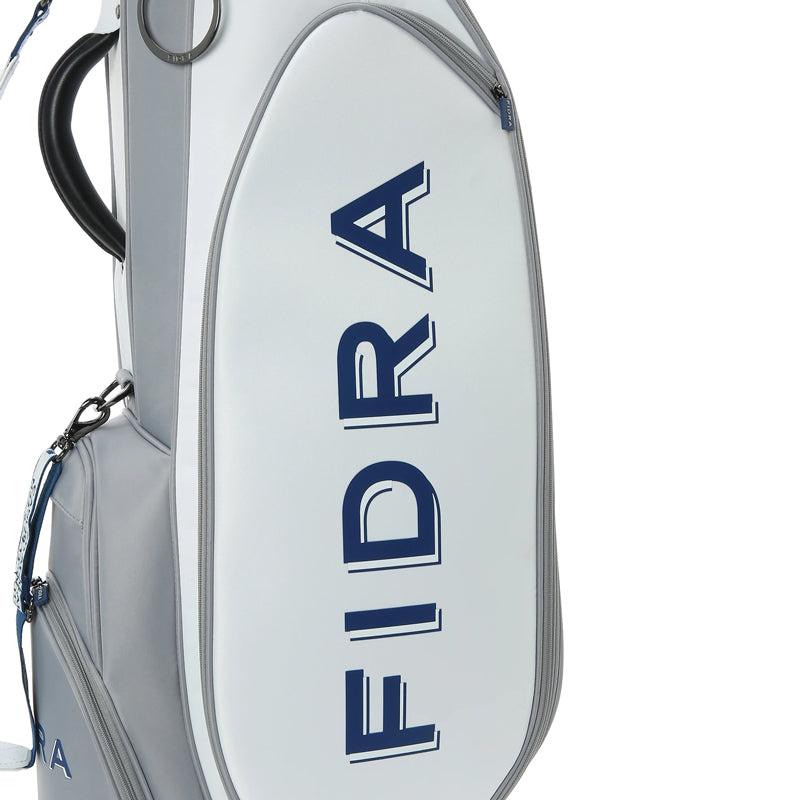 ブランドロゴが施された8.5型キャディバッグ。ユニセックスにお使いいただけるモノトーンのシンプルなデザイン。大容量タイプで使いやすく、両サイドやフロントにと充実のポケットを複数配置した機能性も魅力。取り外し可能なショルダーストラップ付きで持ち運びも楽々。いろいろな場面でストレスなく素早く対応出来ます。