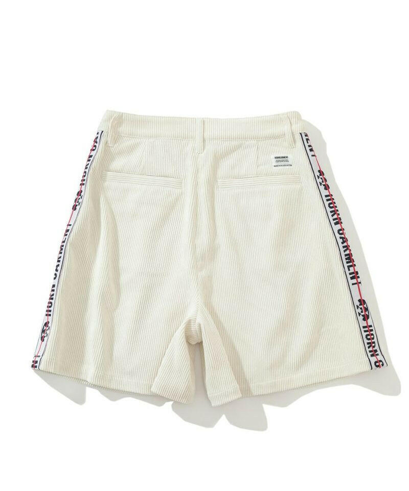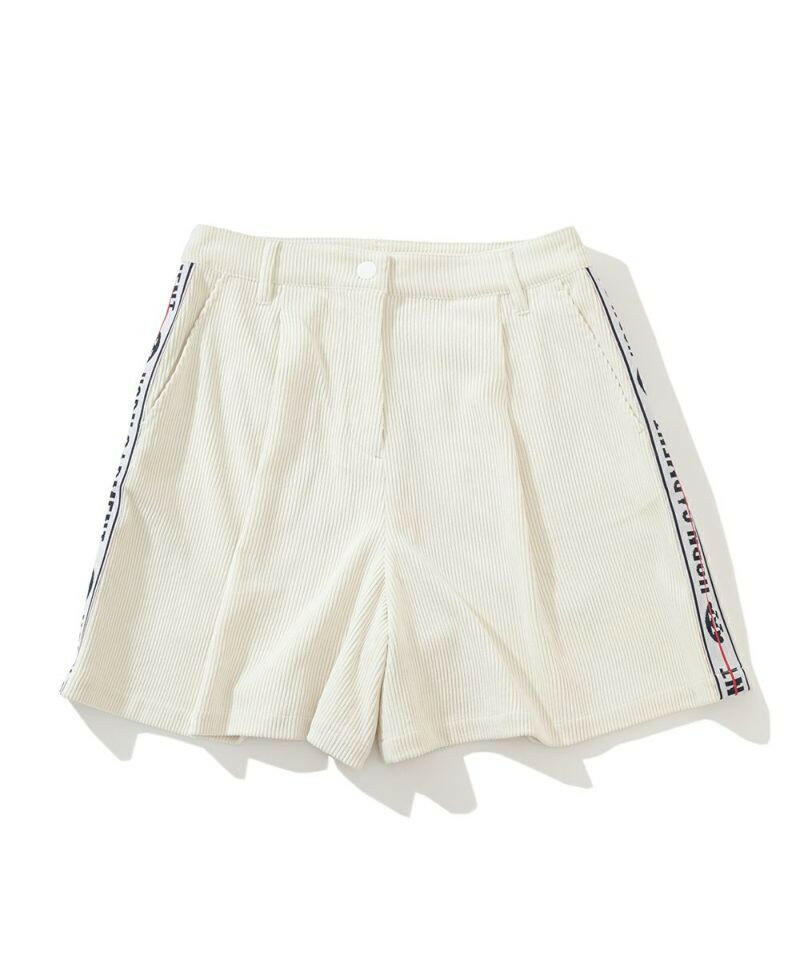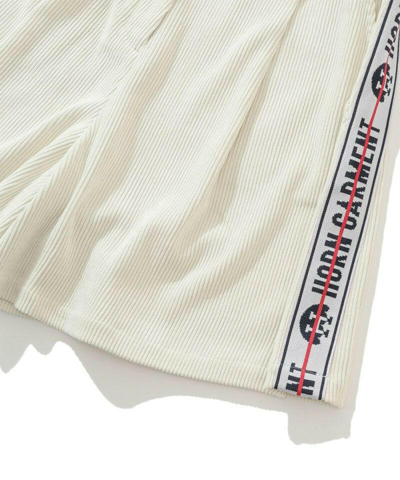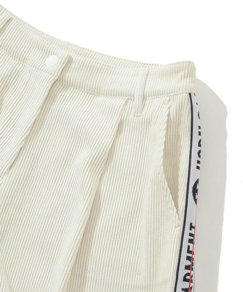 ウールライクなコーデュロイ生地を使用したキュロットパンツ。両サイドにオリジナルジャカードテープを装着しました。タックで腰まわりにゆとりをもたせ、裾にかけて大きく広がる適度にボリュームのあるシルエットを採用。ノンストレスの着用感です。