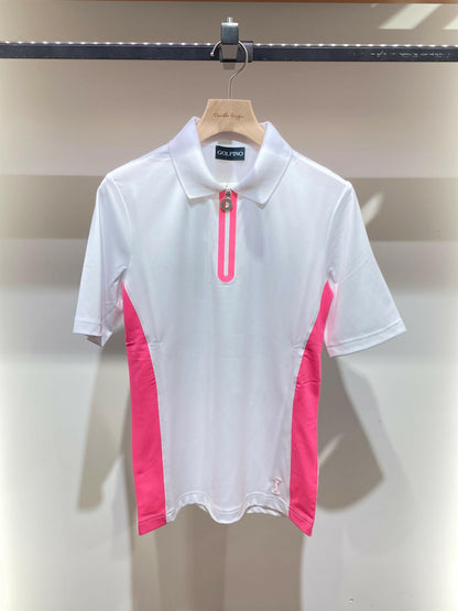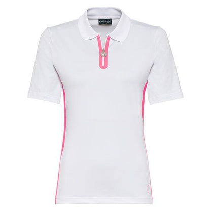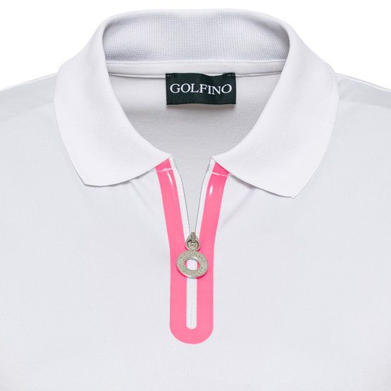 ブランドGolfinoの女性用ポロシャツ。通気性、速乾性、撥水性に優れた機能素材を使用。ポロシャツにはファスナーが付いています。