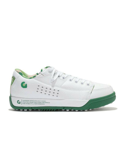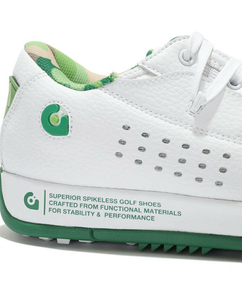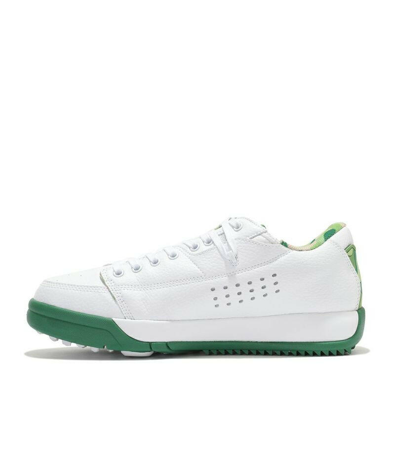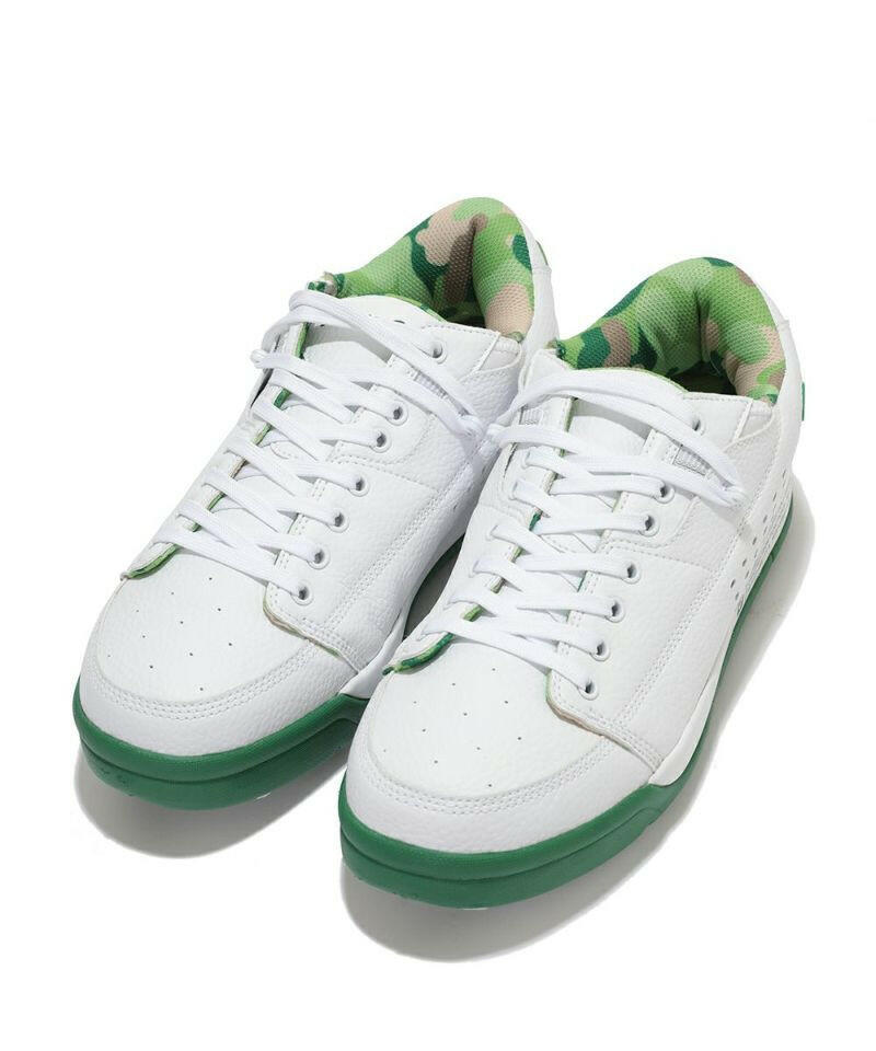 あらゆるスポーツシーンに対応するローカットスニーカー。アッパーには手入れしやすい合成皮革(シボ)を使用。着脱が容易な”EASY ON / OFF"仕様。また、シューレースを強く縛ることができる”シューレースフック”ディテールを採用し、ハードなスポーツシーンにも対応します。オリジナルの”GOLF COURSE CAMO”パターン生地をライナーやミッドソールに使用し、デザインにアクセントを加えました。
