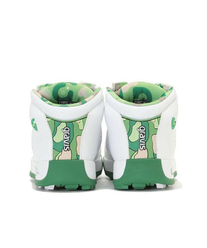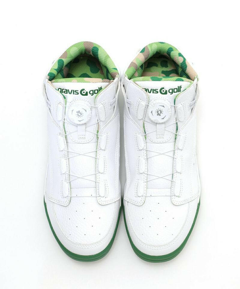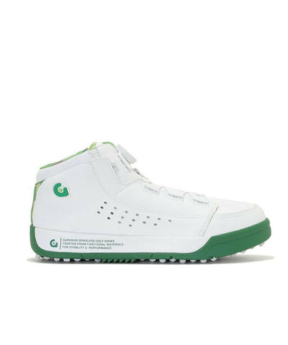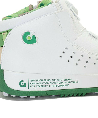 あらゆるスポーツシーンに対応するハイカットスニーカー。アッパーには手入れしやすい合成皮革(シボ)を使用。着脱が容易な”EASY ON / OFF"仕様。またスポーツシーンに適した”FREE LOCK”ダイヤルシステムを採用しており、直感的な調整が可能です。オリジナルの”GOLF COURSE CAMO”パターン生地をライナーやミッドソールに使用し、デザインにアクセントを加えました。