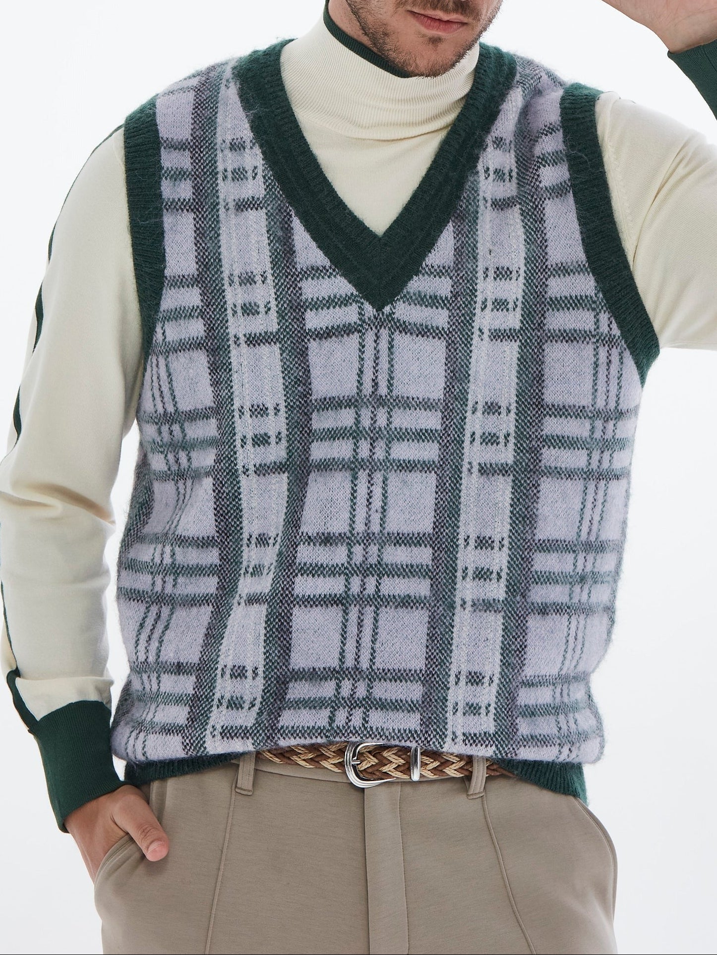 唯一無二の色味が映えるチェック柄ニットベストは、トレンド感あるデザインで着こなしに存在感をプラス。