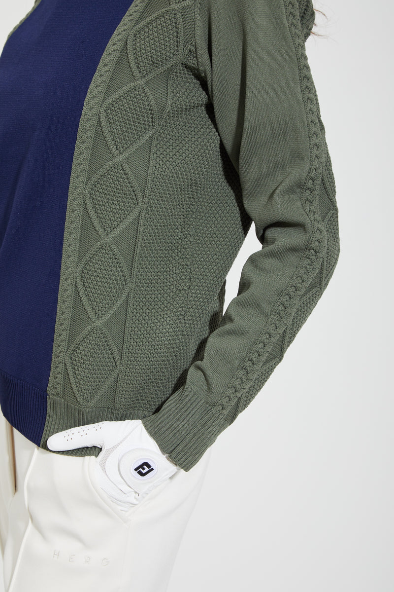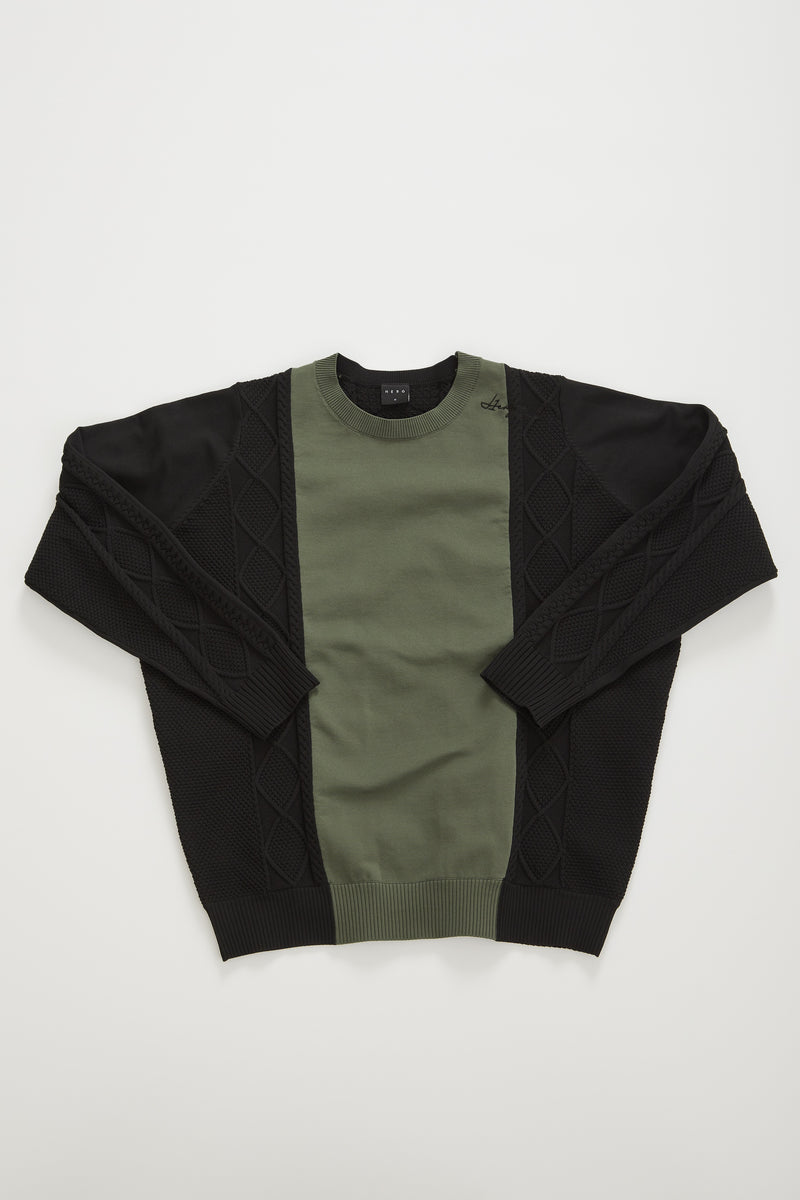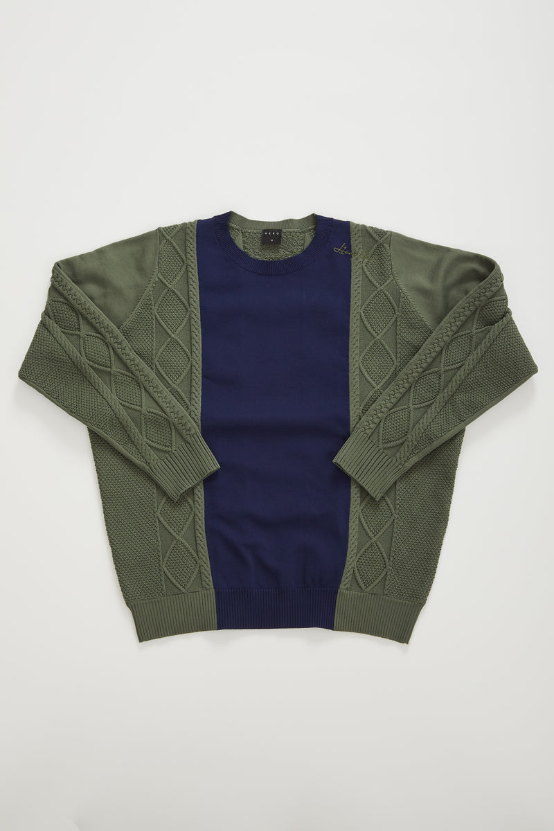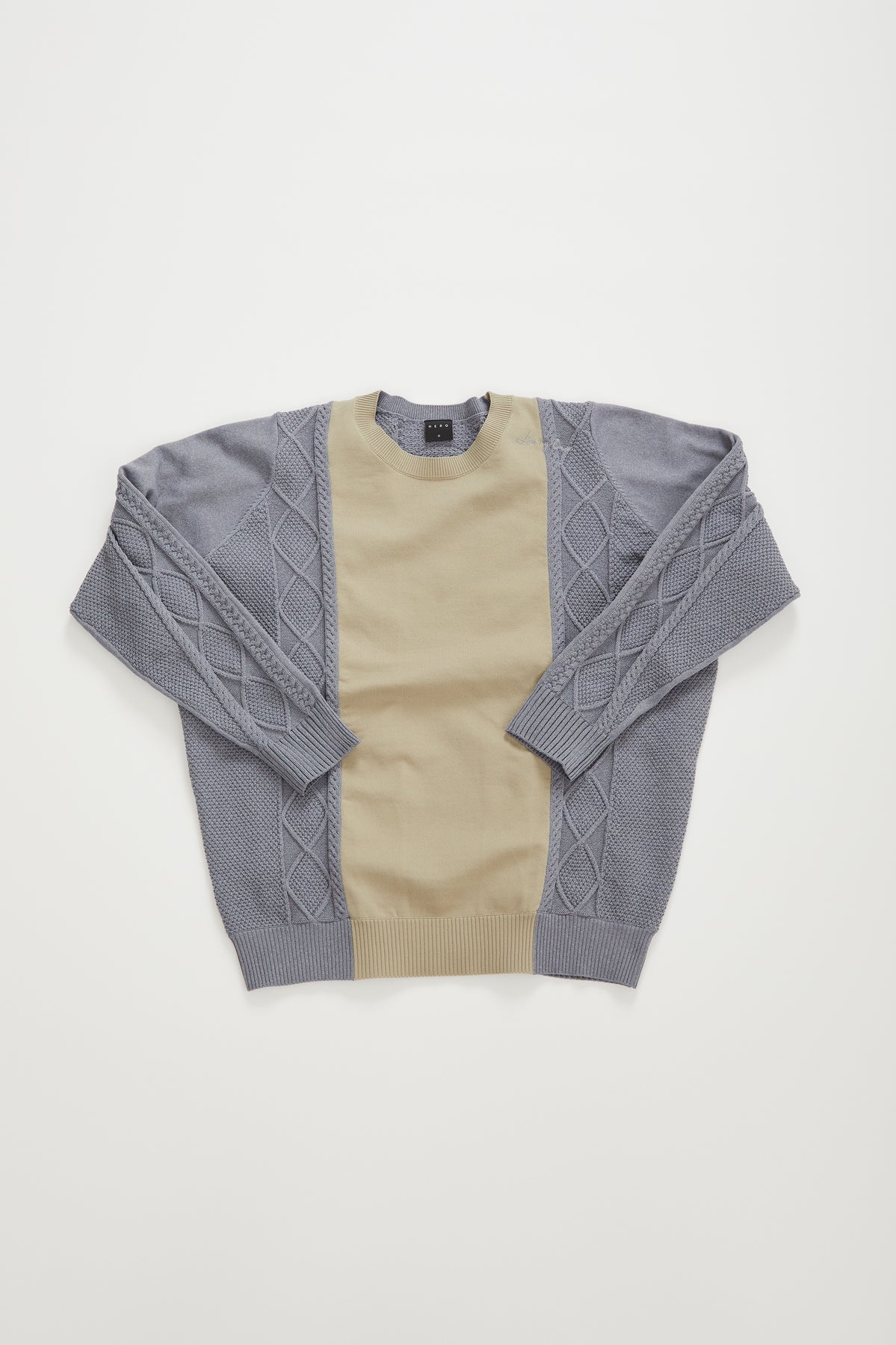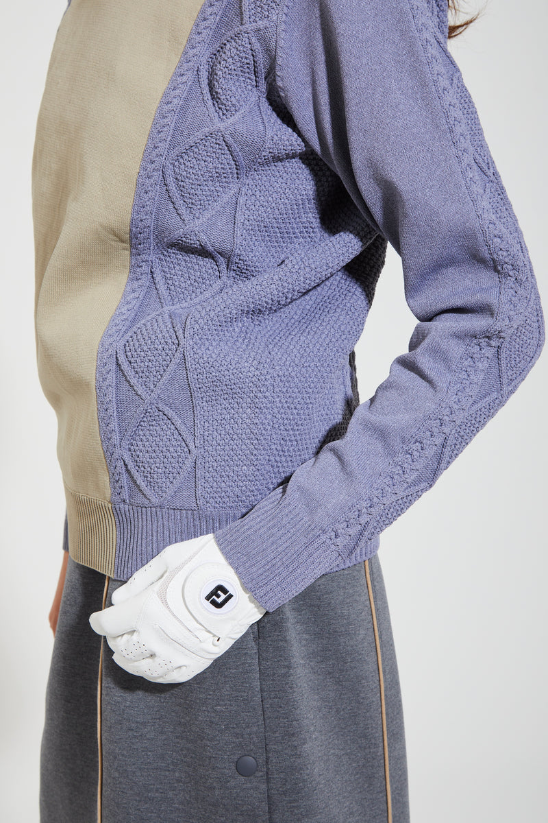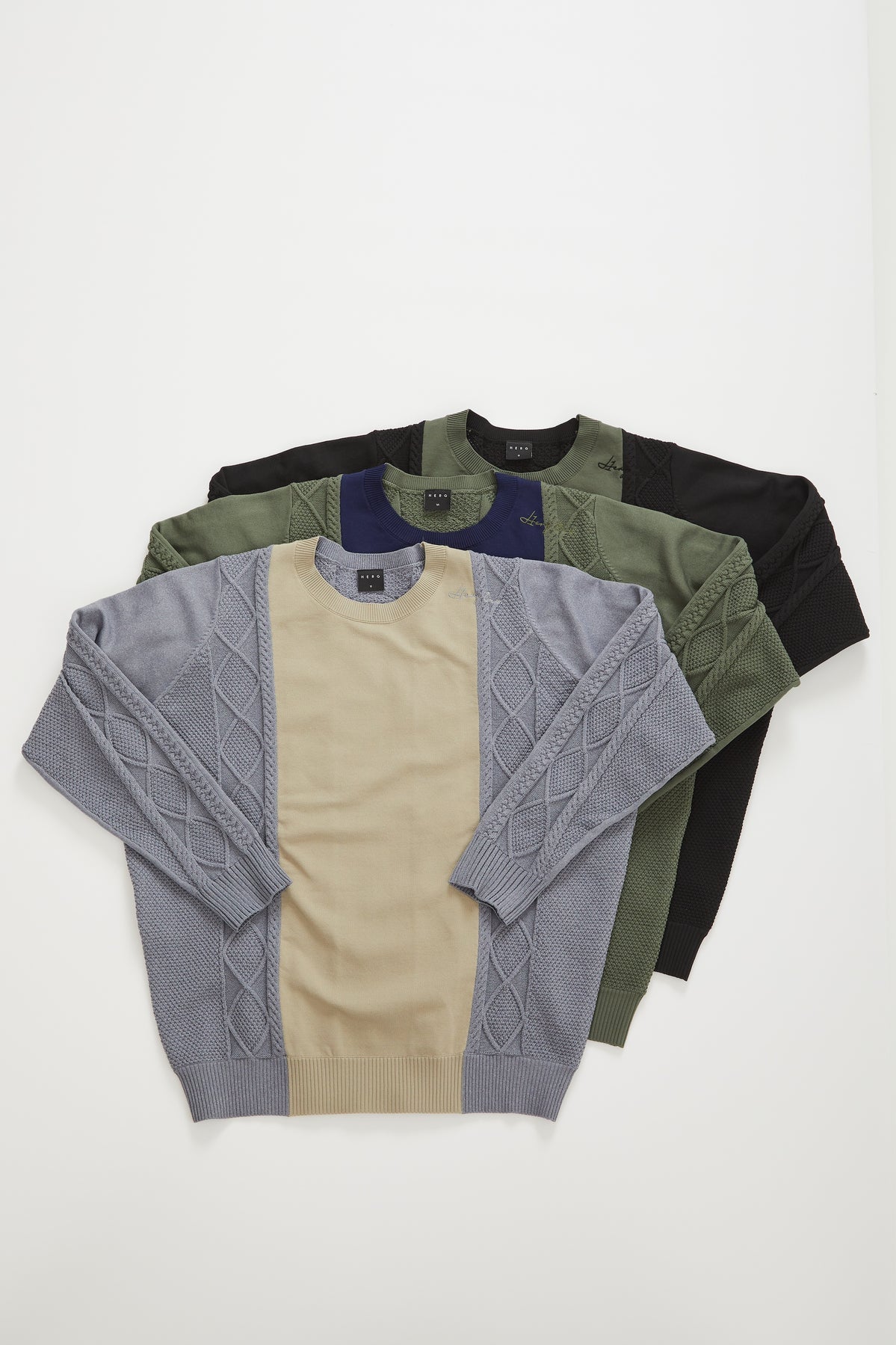 エルグワンの秋冬代表的なケーブルミックスクルーネックニットは、1枚で存在感を発揮するデザインが特徴。薄手で立体感あるケーブル編みながら軽量で、異なる編み組織を組み合わせた特殊ポリエステル糸が使用されています。今年のデザインは、クラシックな要素を加えたアップデート版で、天竺編みとケーブルデザインのバイカラー&ミックスが魅力。さまざまなボトムスに合わせやすく、直感で色を選んで楽しめる一枚です。