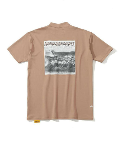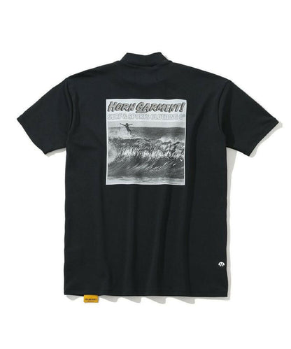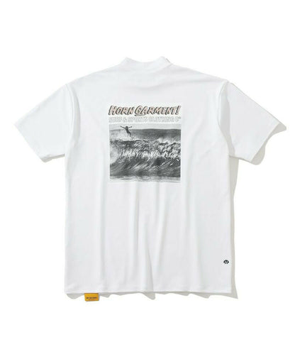 ビンテージアメリカンをイメージしたモックネックTシャツ。アートディレクターArnoud Verhaeghe(アーノルド・ヴェラーゲ)が手がけたアメリカンテイストのモチーフを前後身頃にプリント。全体的に程よくゆとりをもたせた定番のリラックスシルエット。ペットボトルのリサイクル素材で、吸水速乾、接触冷感、紫外線防止、防透けに優れています。ゴルフシーンに限らず普段使いでも重宝するアイテムです。