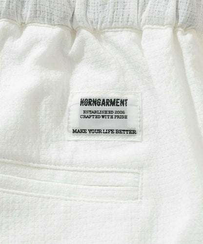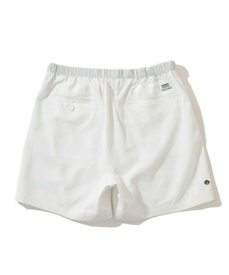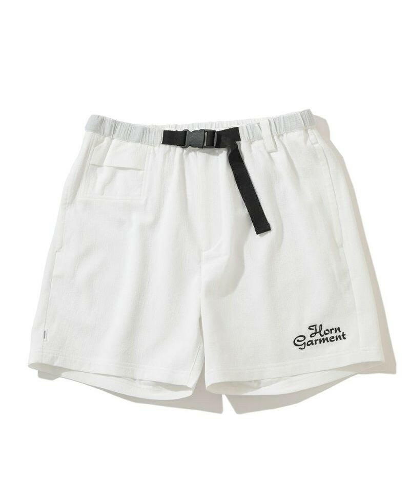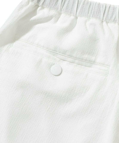 暑い季節に最適な麻調生地のイージーショートパンツ。ヒップ周りから裾にかけて程よいゆとりがあるリラックスシルエット。特殊技術により通気孔を持たせた麻調ドットエア生地。ストレッチ性、通気性、防シワ性、ウォッシャブル性を兼ね備えた機能素材。ウエストはゴム仕様にサイドリリース式バックルで幅広いウエストサイズに対応。デザイン性と機能性を兼ね備えたアイテムです。