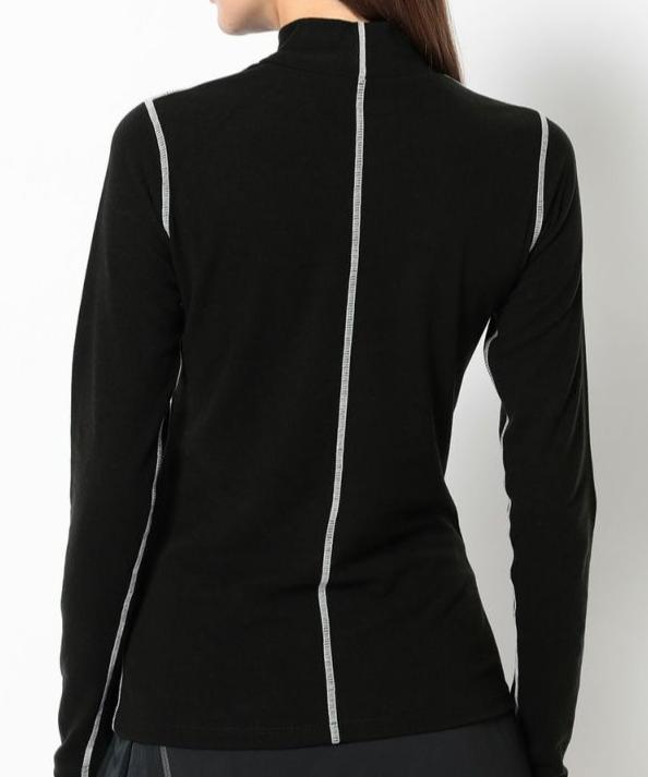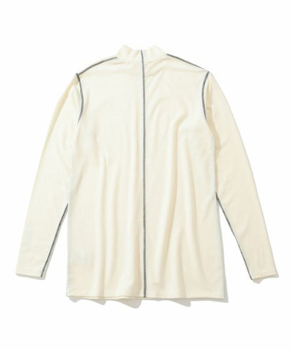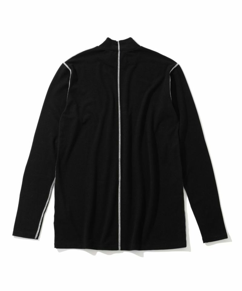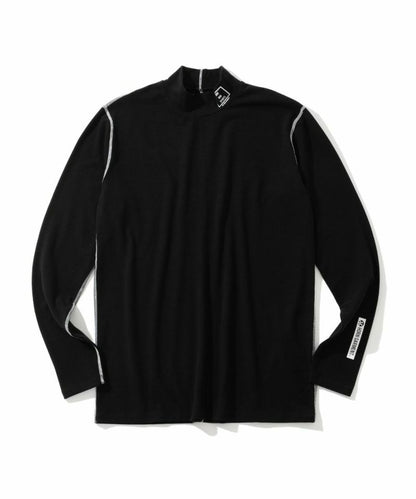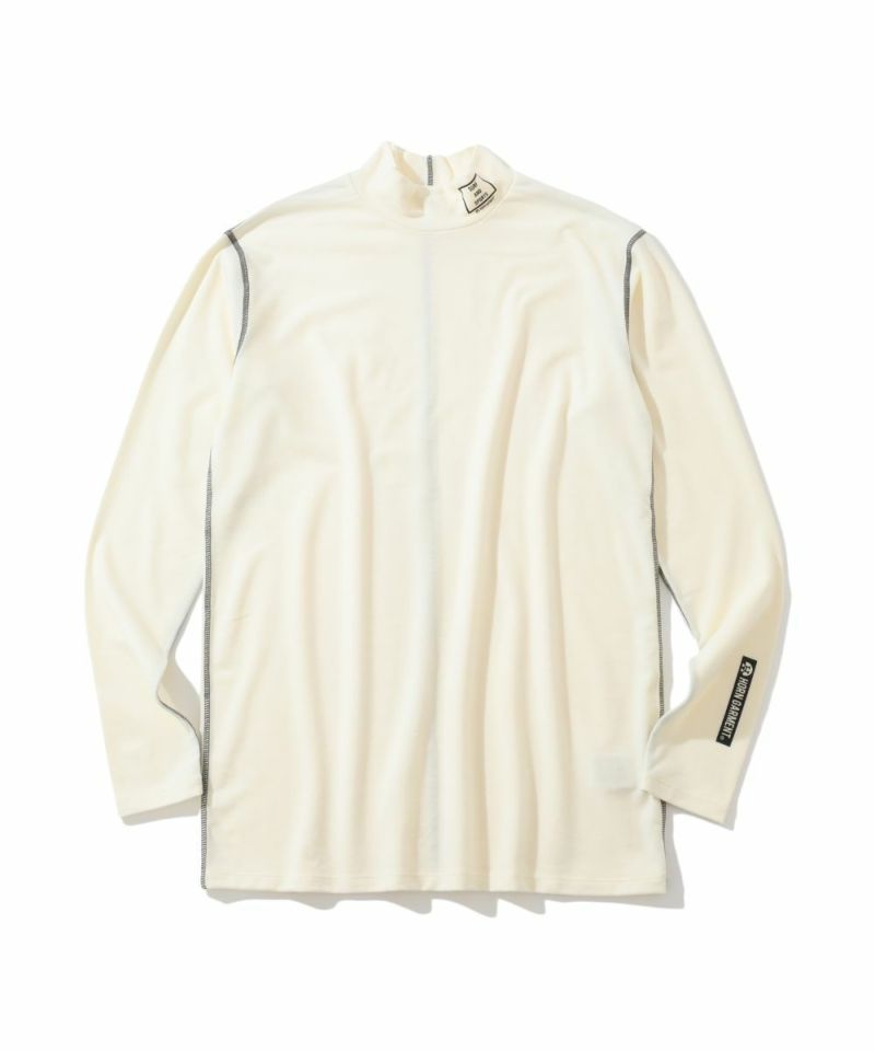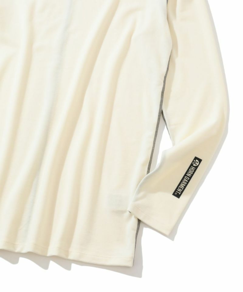 上質な肌触りと高い保温性を持つ3層構造のインナーです。スクエアロゴが衿に、左袖口にはブランドロゴがプリントされており、シンプルでスタイリッシュなデザインが魅力。表地には発色が美しい起毛感のあるレーヨンを使用し、裏地には肌に優しいコットンを配し、間にはストレッチ性に富んだポリウレタンを挟み込んだ特殊な構造となっています。これにより、保温性、保湿性、ストレッチ性、吸湿性が高く、冬場でも蒸れにくく快適な着心地を提供します。