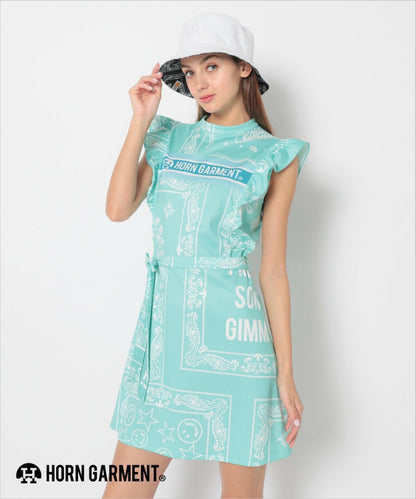 ・ クレイジーバンダナパターンを総柄で表現したノースリーブ ワンピース。