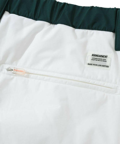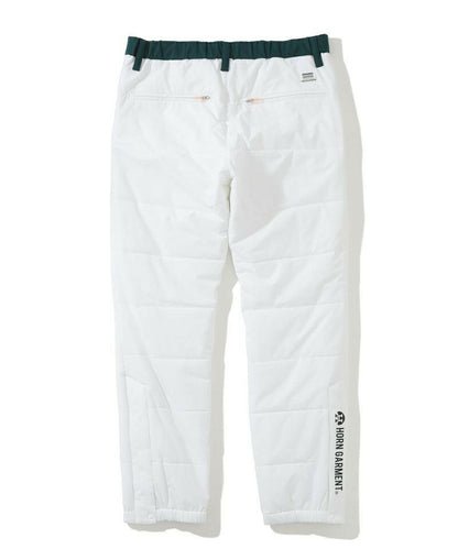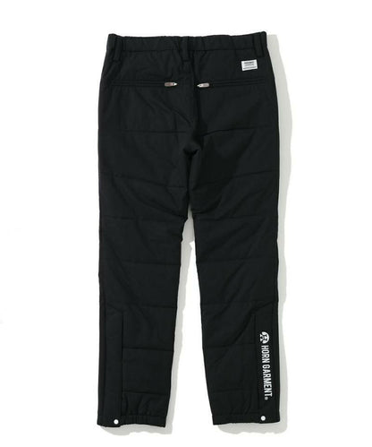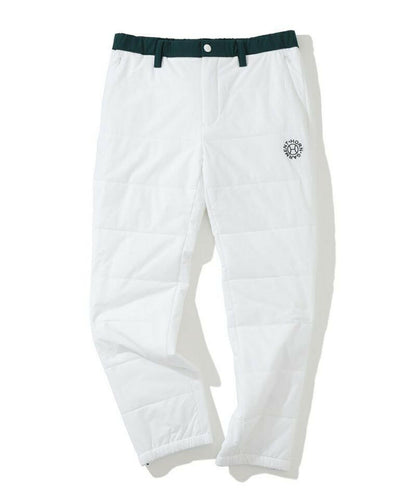 PLAYERS CLUBデザインのストレッチ中綿パンツ。左脇にサープルロゴ刺繍、右裾にブランドロゴプリントを施しました。裾に向けて細くなるテーパードシルエットで、裾は脱着しやすいZIP開き仕様になっています。