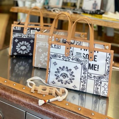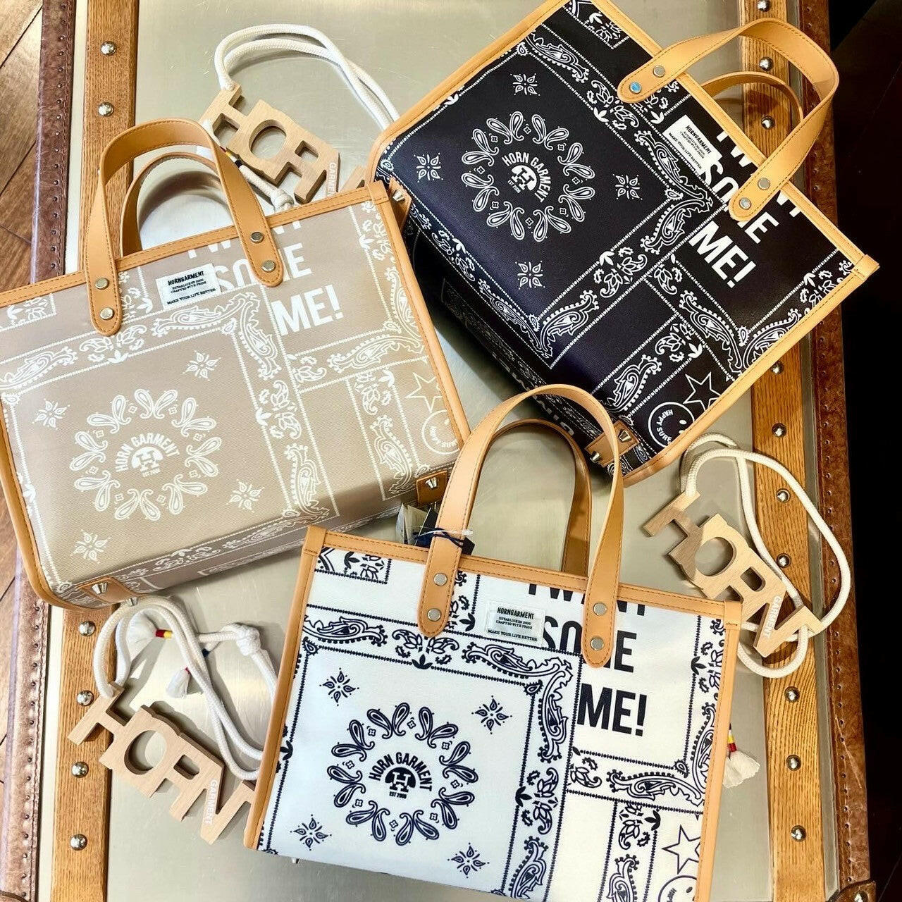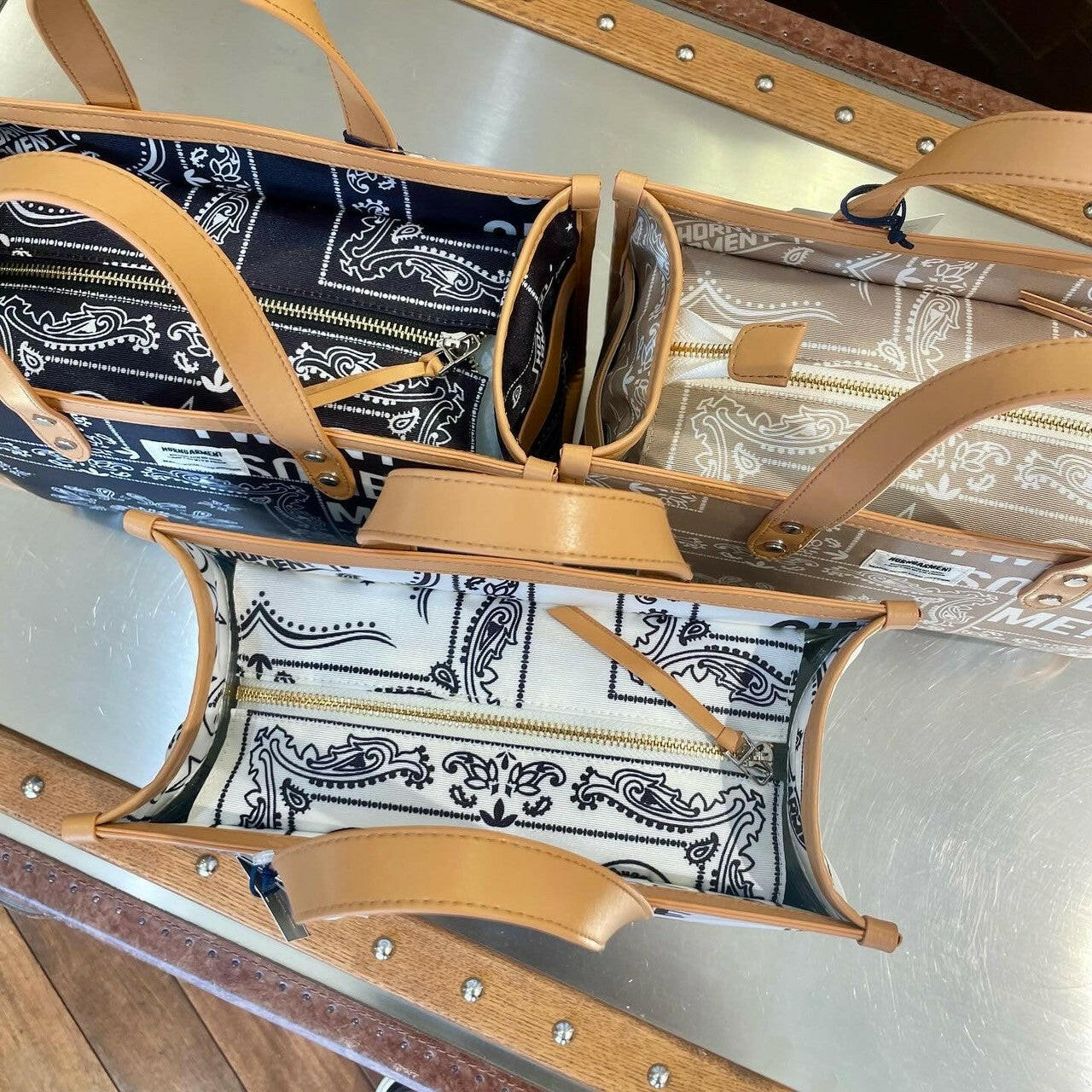 ・バンダナ総柄を全面にあしらったナイロンタッサーカートポーチ。