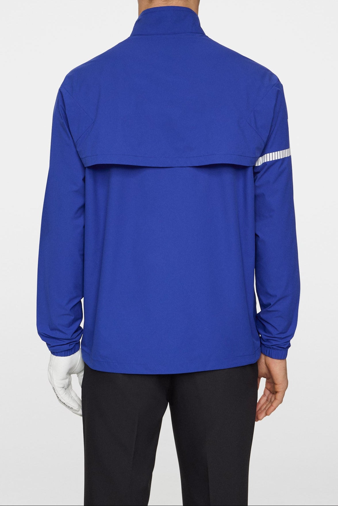 風を防ぎながらも通気性を確保したウィンドジャケットです。フリースライニング付きの襟が首元を暖かく保ち、背面のベンチレーションが湿気を逃がして快適な着心地を提供します。裾のドローコードでフィット感を調整でき、アクティブな動きにも対応します。