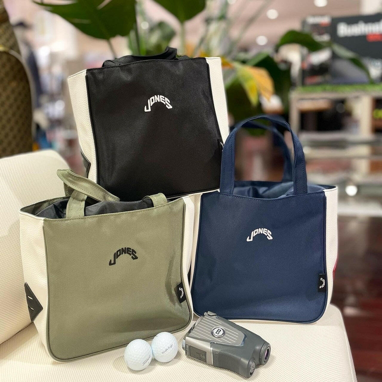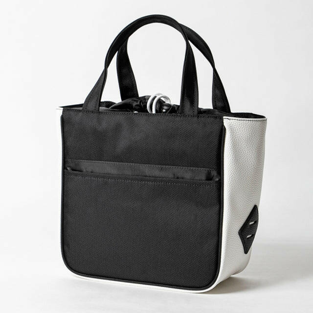 ゴルフのラウンドのみならず、普段使いにも手頃なサイズ。背面とインナーにはポケットもあり小物の収納にも便利です。インナーの上部は紐で締めることができるので安心です。ナイロン素材で側面と底はPVCレザーを使っているのでとても軽量で使いやすい。